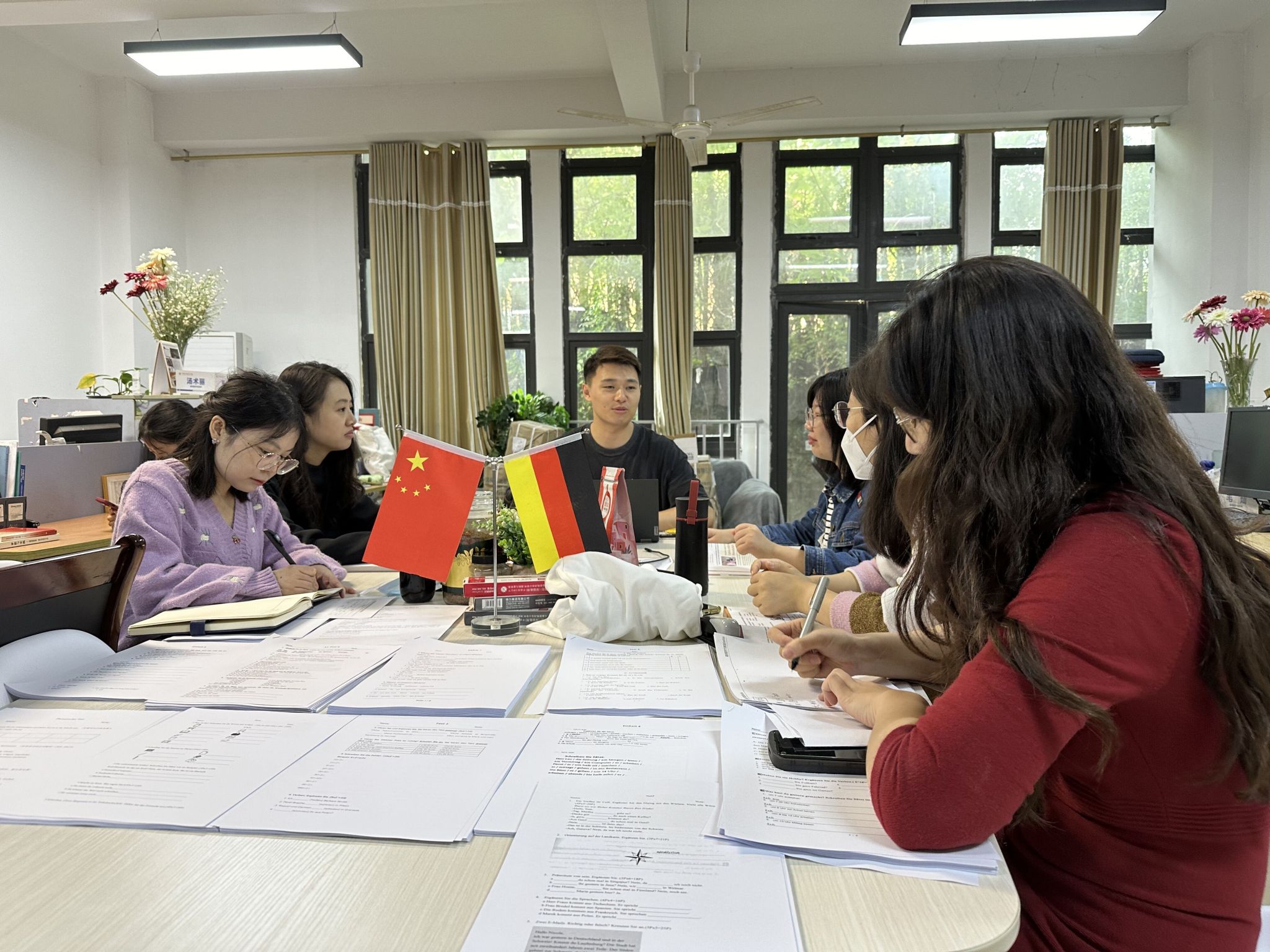 2022级《德语B1(上)》课程组教师集体备课于第9月28日在6214办公室举行。7名任课教师就本学期的教学进度、成绩评定标准、单元测验、学生欧标德语考试等问题进行了交流与讨论。随着专业课的增多,不少学生感觉外语难度增加。因此,如何帮助中外合作办学专业的学生更有效率地提升德语水平是本次会议的重点。在研讨环节,教师们就德语教学中的课外资料选择、教学方法、评估方式等问题进行了深入讨论,分享了各自在教学实践中的成功经验和教学案例,介绍了使用多媒体技术、角色扮演、小组合作学习等方式来提高学生的语言能力和跨文化交流能力,共同探索适合中外合作办学德语课程的教学模式。