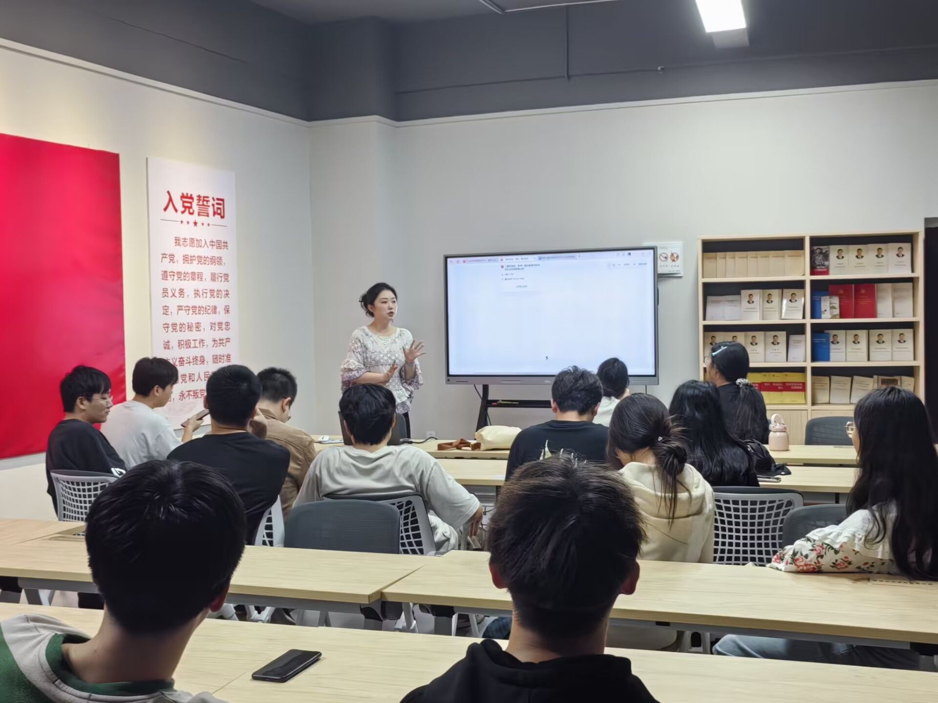 李老师开展5月份的活动部署,并针对学生专业属性和行业就业现状对是洗浴就业问题进行指导,再结合以往就业成功的案例,向同学们提出来宝贵的意见,