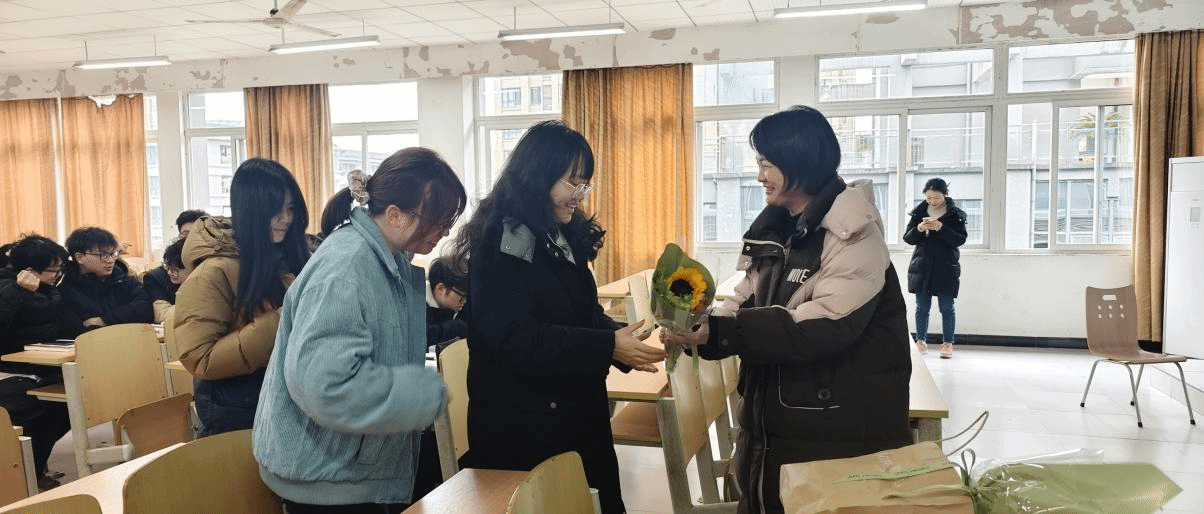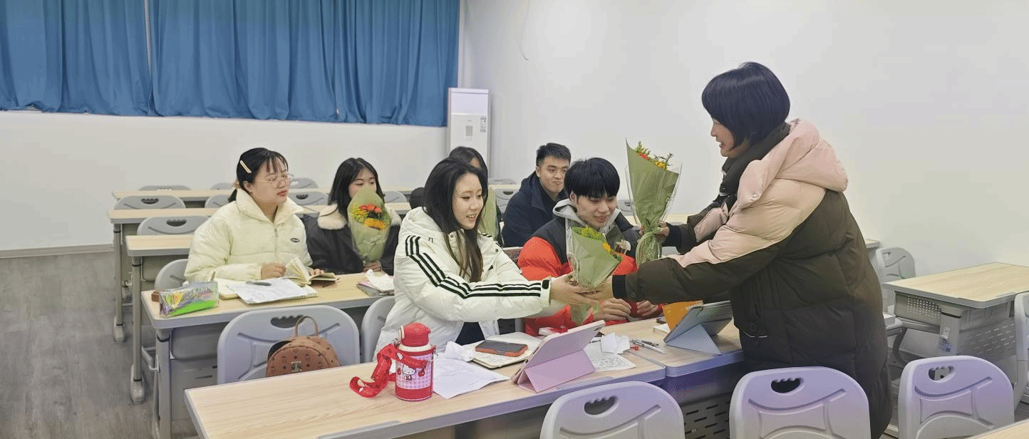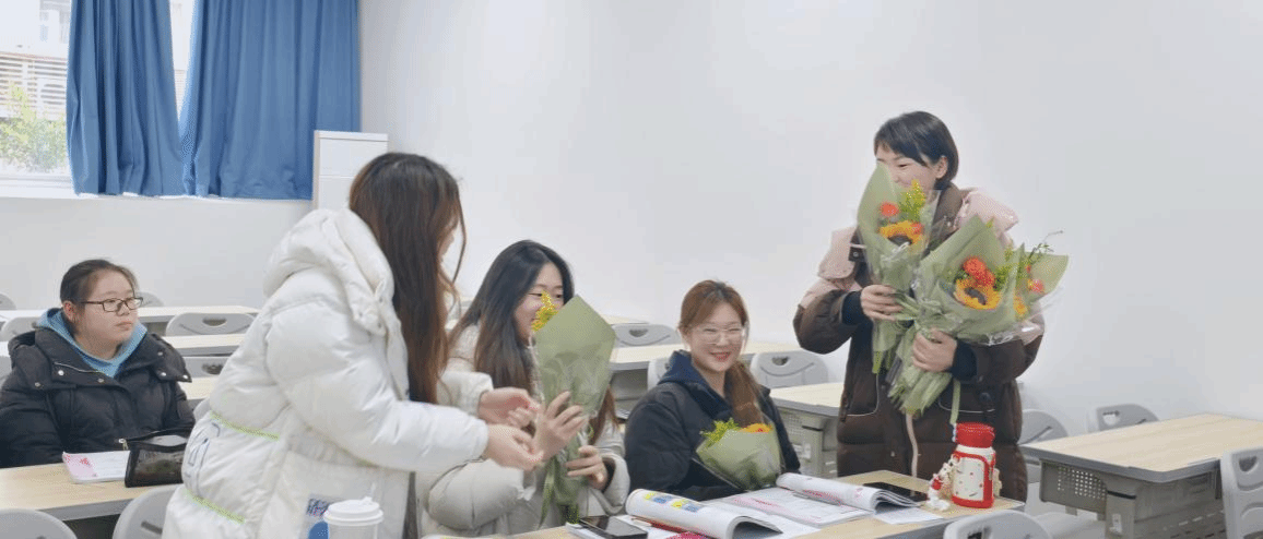 “女生节快乐,愿你们如花般绽放!”李魁梅副院长的话语简洁而真挚,她手中捧着一束束包装简约却又不失精致的鲜花,逐一递到了每位女生的手中。这些鲜花,虽然没有华丽的装饰,却蕴含着学院对女生们最真诚的祝福与鼓励。女生们接过鲜花,脸上洋溢着惊喜与感动的笑容,这份来自学院的关怀,让她们感受到了家的温暖。
