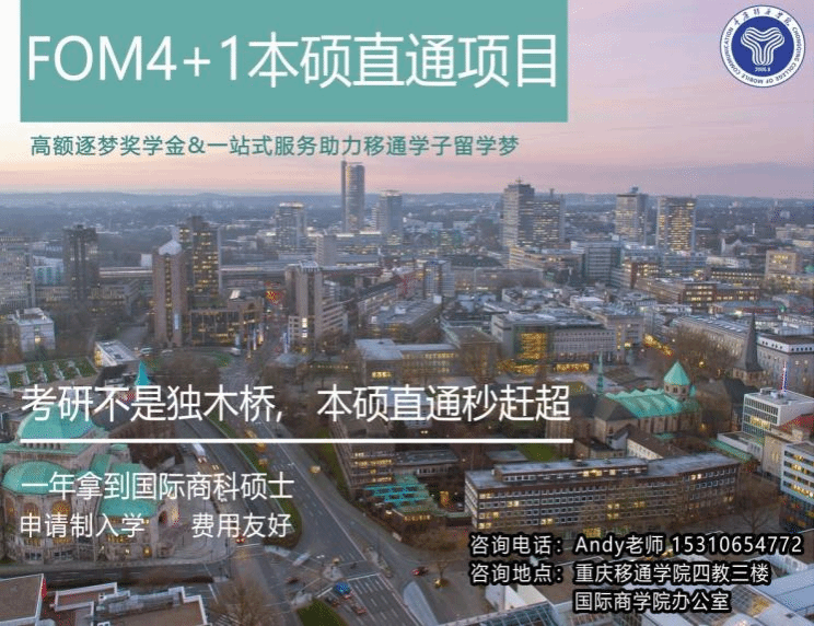 我们诚挚地邀请更多怀揣梦想、渴望国际视野的你,加入FOM4+1本硕直通项目国际班,与我们一起,在知识的海洋中遨游,共同书写属于自己的精彩篇章。在这里,你将遇到志同道合的伙伴,享受国际化的教育资源,拓宽视野,提升自我。让我们一起,以更加开放的心态,拥抱世界,成就未来。