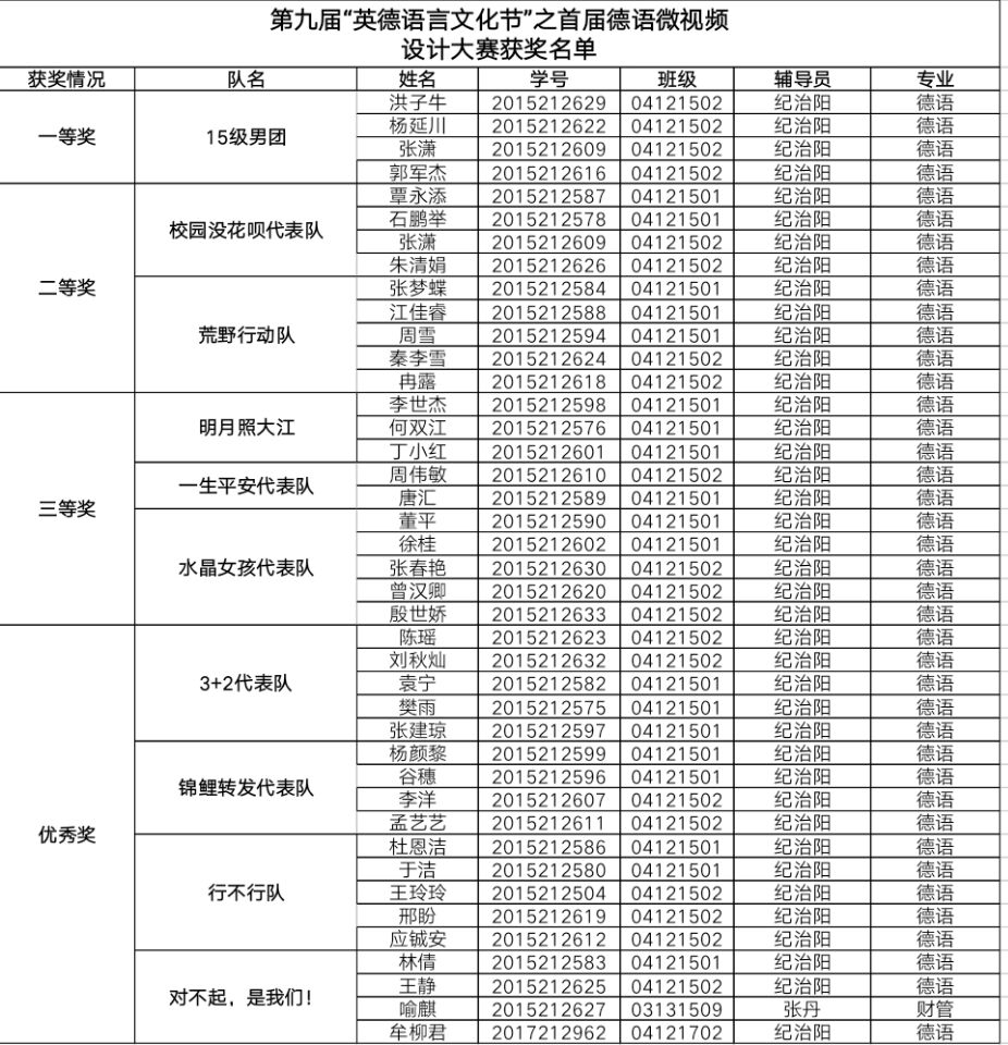 这次德语微视频大赛,虽是首届仅针对外语系全体德语专业同学,但通过这次比赛我们了解了同学们在日常生活中与德语学习中的乐趣,一睹了德语的风采,同时也提高了我们对德语学习的乐趣。期末将至,不管是大一、大二还是大三的同学,这都是一个沉淀的阶段,运用所学专业知识进行微视频对话与创作,是一个展示累计知识的机会,也是个蓄力勃发的时刻。