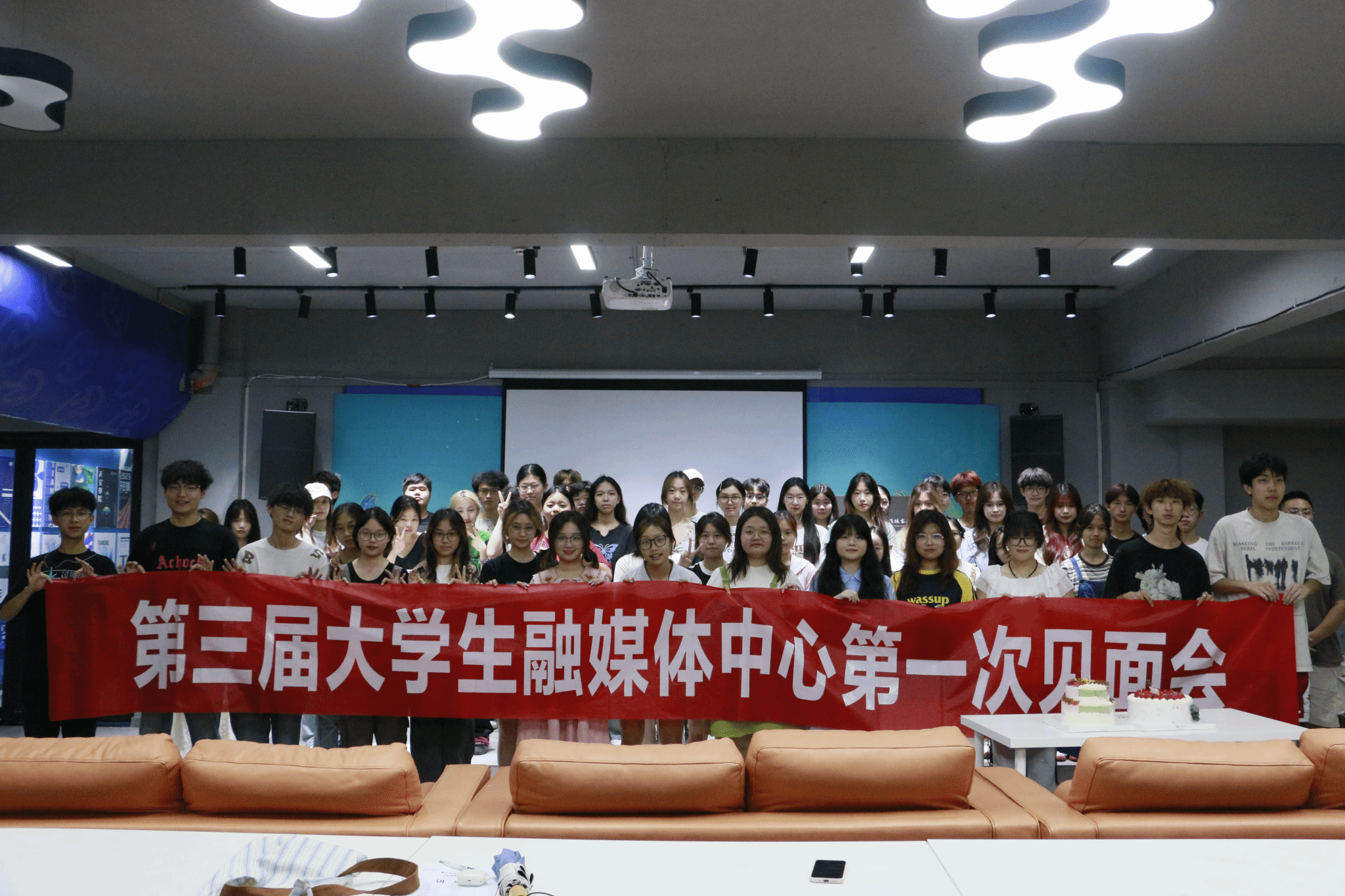 在见面会接近尾声时,大家共同参与了切蛋糕仪式。这一环节不仅为见面会增添了温馨的氛围,也象征着大学生融媒体中心的温暖与团结。在接下来的时间里,大学生融媒体中心将继续和同学们一起前进,共同为宣传移通做贡献。