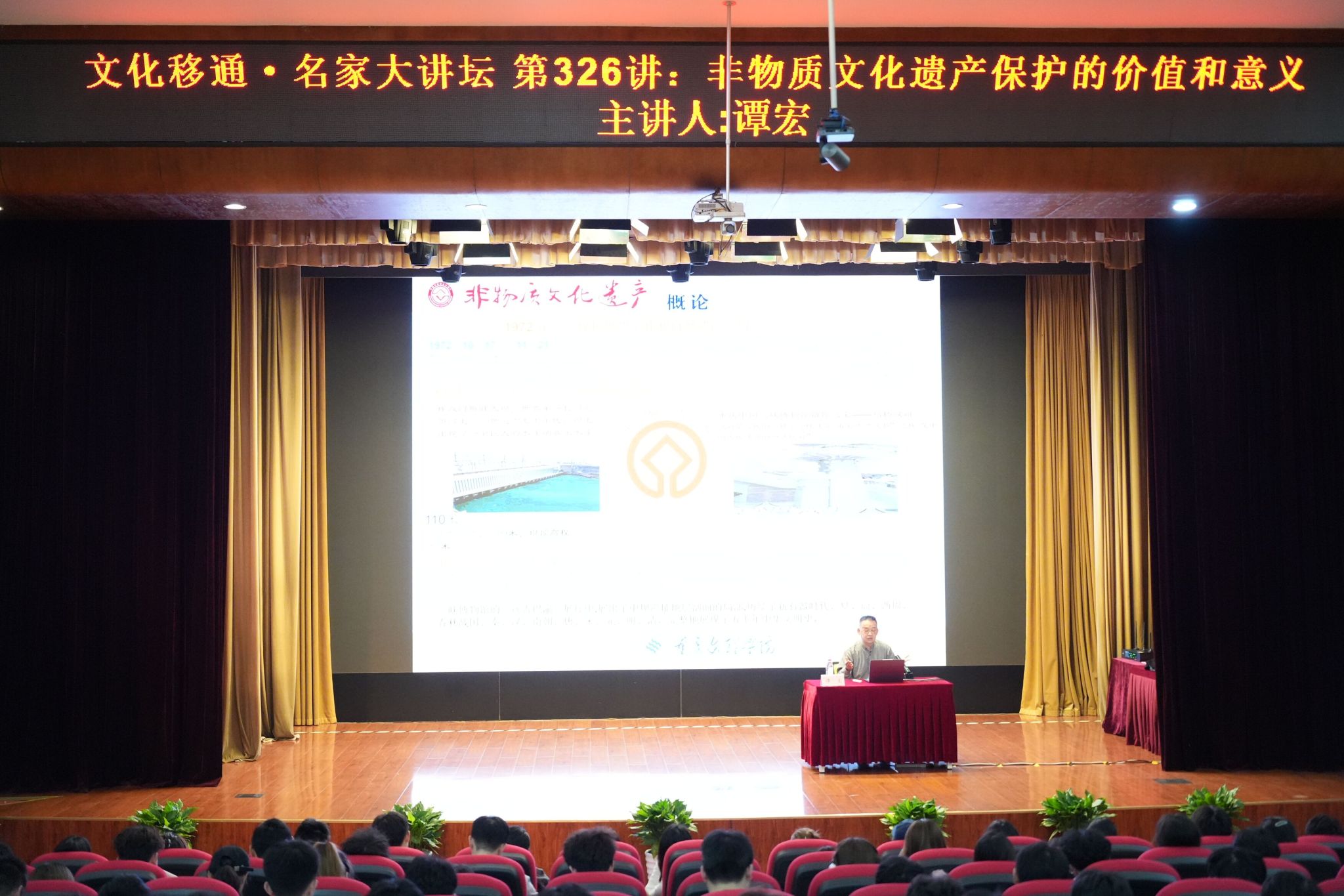 下午16:00,谭宏教授做客“文化移通——名家大讲坛”,在下里巴人剧场开展了以《非物质文化遗产保护的价值和意义》为题的讲座,带领师生们感受中国传统文化和非物质文化遗产的魅力。