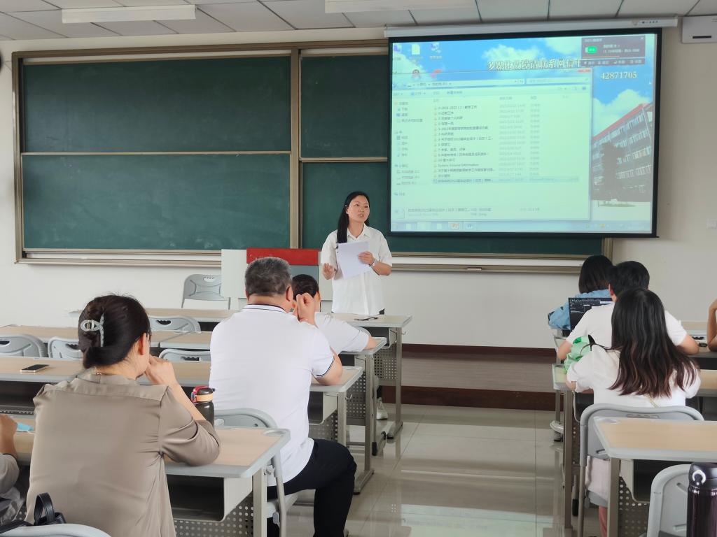 刘贵容副院长对学院的教育思想大讨论实施方案进行解读,刘院长主要从思想大讨论的内容,要求老师们以教研室为单位展开讨论,在部分板块需要积极联络校企合作单位的企业导师和学生,围绕六个方面展开思想大讨论。同时强调了各阶段工作的时间节点、各阶段主要工作任务、以及工作成果要求等。