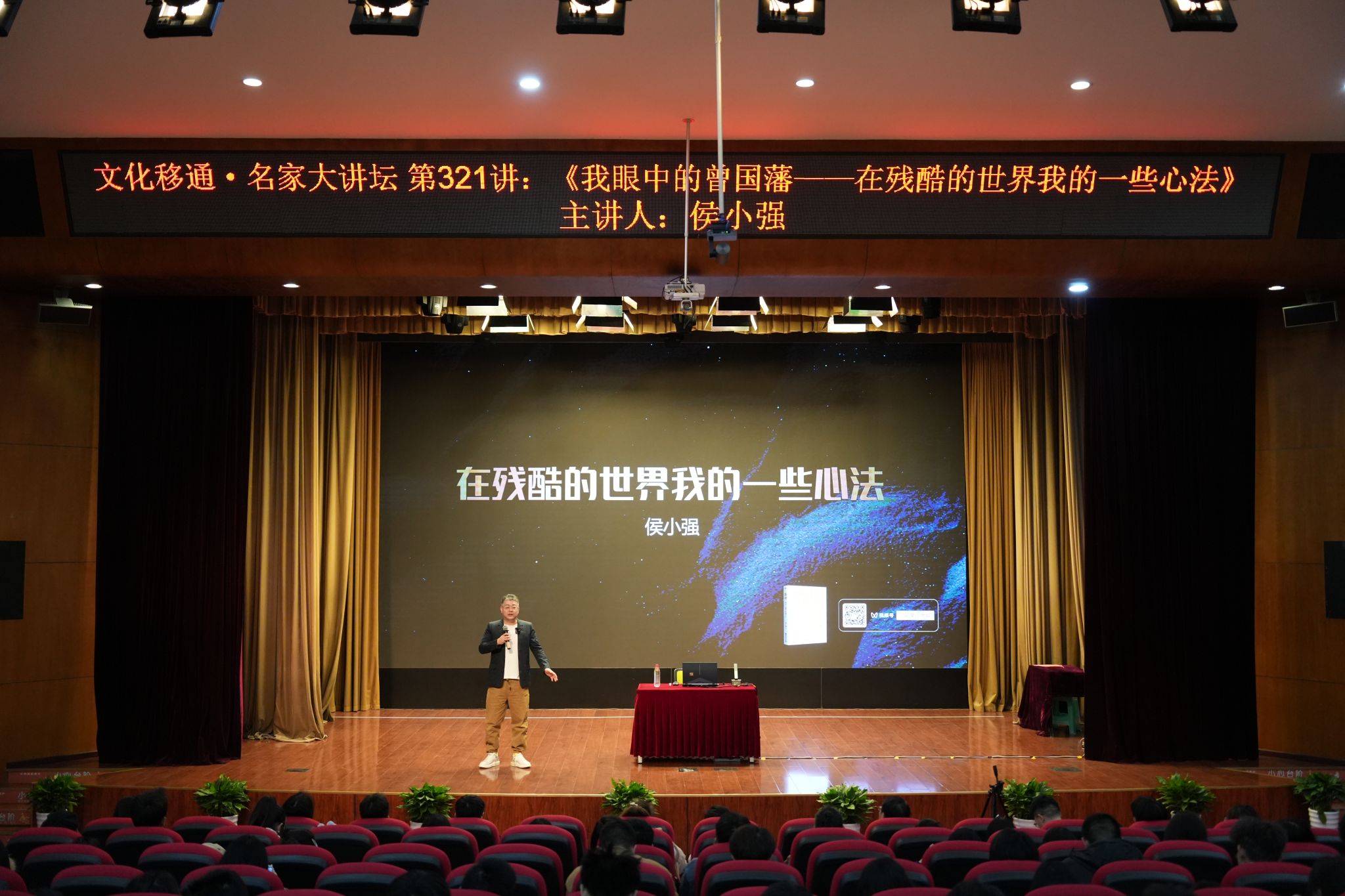 “站在巨人的肩膀上,我们可以看得更远”。3月11日下午16:00,金影科技董事长侯小强做客“文化移通——名家大讲坛”,在下里巴人剧场开展了以《我眼中的曾国藩——在残酷的世界我的一些心法》为题的讲座,侯小强老师以其深厚的学识和独到的见解,向同学们全面而深入地介绍了中国近代史上的杰出人物——曾国藩,了解并学习他的品德与为人处世的方法。