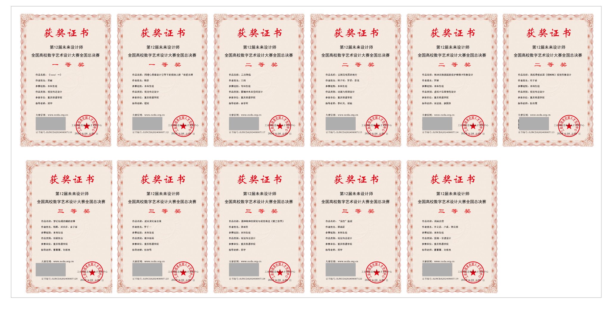 艺术传媒学院在2024年教育部A类学科竞赛中累计获奖757项。其中在全国大学生广告艺术大赛中斩获国家二等奖2项、三等奖3项、优秀奖37项,获得省部级一等奖8项、二等奖32项、三等奖69项,获得全国赛区及重庆赛区优秀组织奖,教师李轶天、王丽童、彭燕雪获得重庆赛区优秀指导教师荣誉称号。在未来设计师·全国高校数字艺术设计大赛中斩获国家一等奖2项、二等奖4项、三等奖5项、教师组二等奖1项,获得省部级一等奖12项、二等奖22项、三等奖26项。