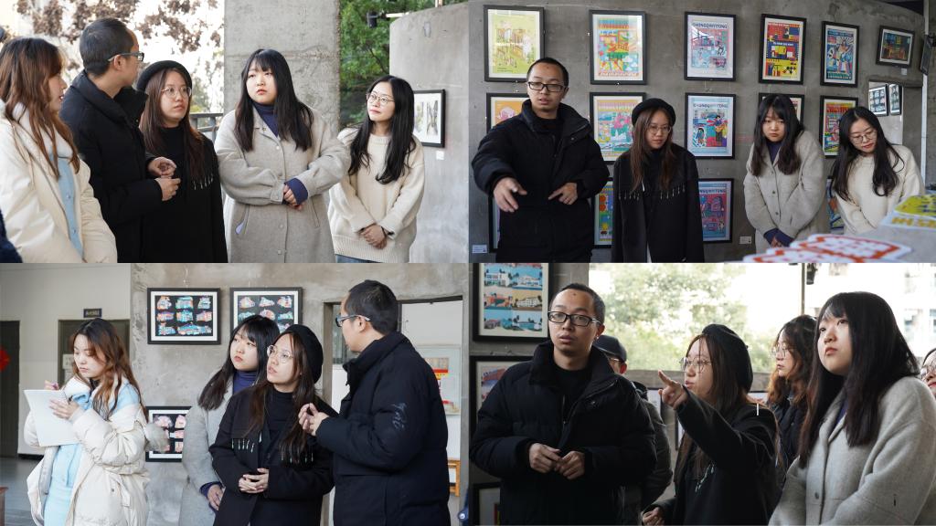 沙龙开始前,在数字媒体艺术教研室廖国臣老师的带领下,钓鱼城科幻学院教师代表参观了由数字媒体艺术教研室主办的《艺术校园 创意移通》优秀作品展,了解数字媒体艺术专业学生的创作学习过程。钓鱼城科幻学院设计部的涂尧老师对展出作品给予高度赞赏和认可并称是“出乎意料的成熟作品”,其中部分作品的科幻气质让她印象深刻。