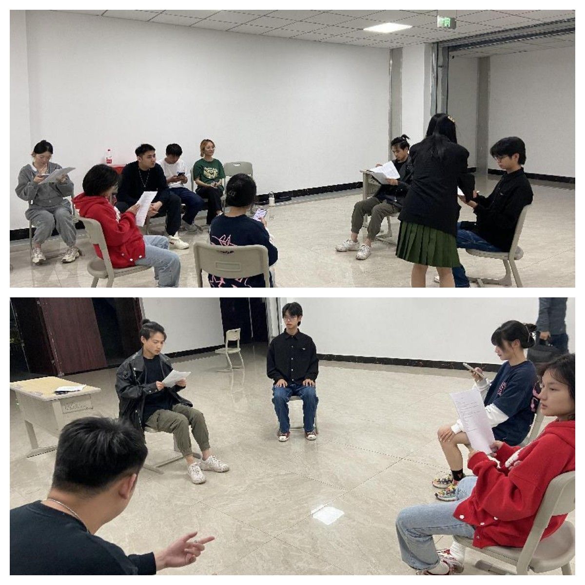 王海鸣老师展开了一场别具一格的剧本围读活动,王老师首先向同学们介绍并围读了中国著名剧作家曹禺先生的话剧《原野》剧本,同学们化身为剧中的各个角色,展示了不同人物的不同性格,如仇虎的对焦家的恨、金子的放荡不羁、焦大星的胆怯懦弱、焦母的冷酷无情等。同学们通过围读剧本,沉浸在不同的人物和不同的情感状态中,经历了一次第二人生的体验。