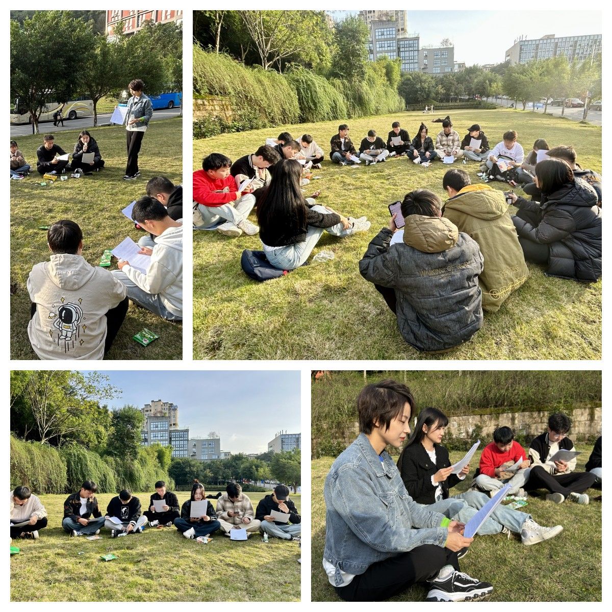 段涵荠老师和王菲老师一起召集学生举办了一场草坪读书会,旨在倡导培养同学们的阅读习惯,传承优秀传统文化,弘扬爱国主义精神,提升广大青年的文化素养。
