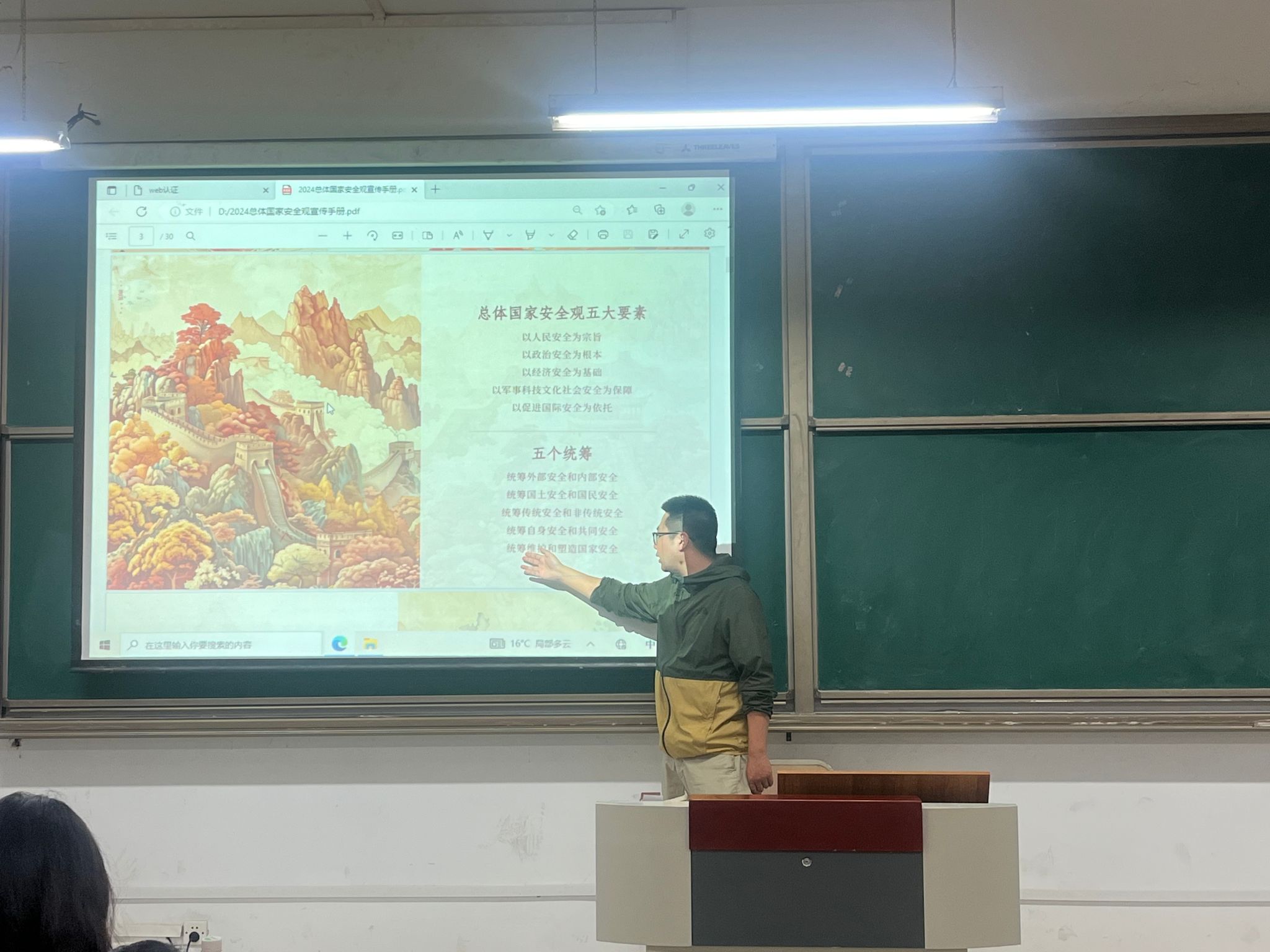 李老师最后强调,当前,我国国家安全仍面临严峻挑战。近年来,危害国家安全的案件,在我国经济、文化、科技、粮食、资源等领域时有发生,警示着当前我们所面临的国家安全问题的复杂程度、艰巨程度明显加大。在如今的互联网时代,科技、网络等领域安全风险凸显。作为新时代教师要继续深入学习国家安全相关法律法规和政策,了解国家安全涉及的领域,提高自己的国家安全素养。