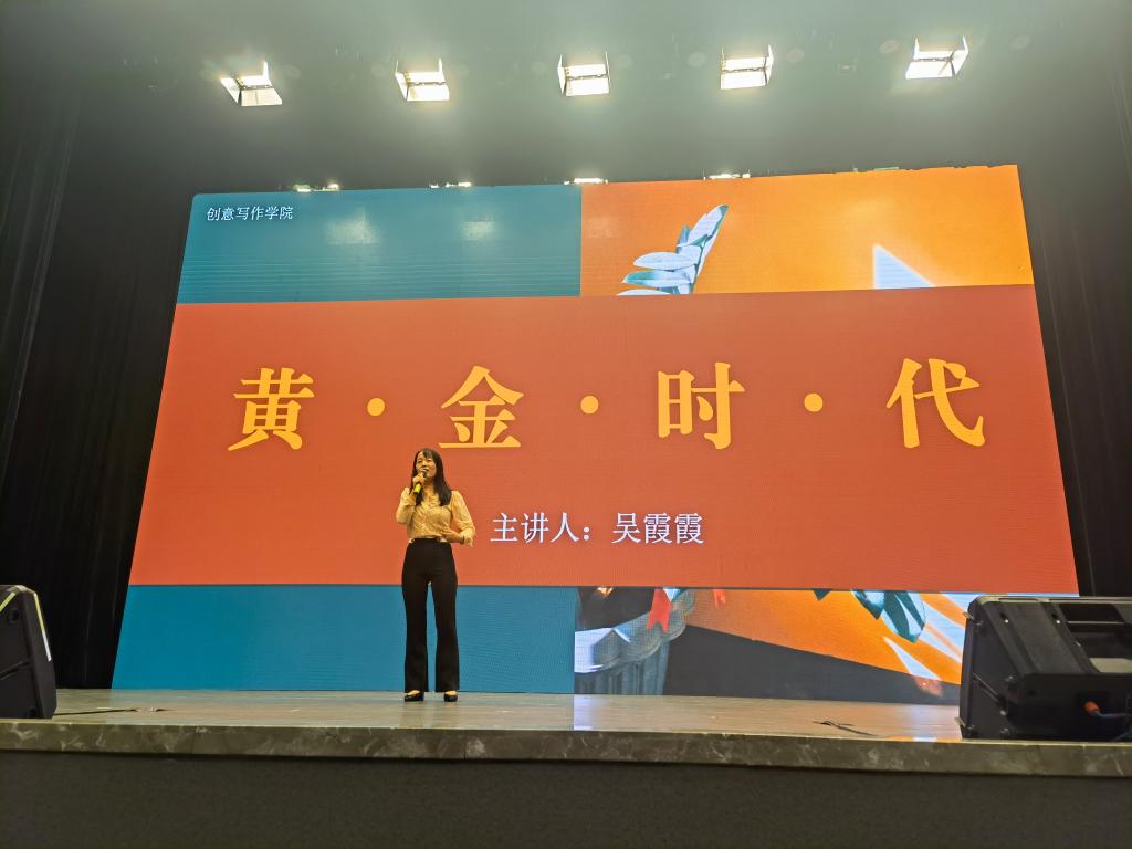 作家班班主任、青年作家吴霞霞老师以激情四射的宣讲方式点燃全场,她说:“为什么来到作家班,它除了写作能力、思维能力和人文修养方面的锻造外,更多的是教给大家一种面对永恒时空的勇气和辨识力,一种真正的创造力。真正的创造力意味着运用你的想象力,发挥你的潜力,创造新的可能性。”