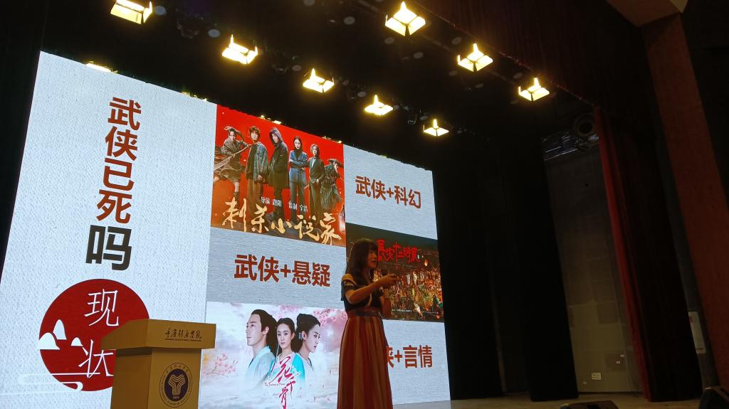 创意写作学院副院长、武侠小说工坊导师吴帆老师则以一身仙气飘飘的装扮吸引了同学们的目光,她以武侠为切入点,讲述这个时代的“侠义精神”,整个缤果大剧院在一瞬间,仿佛回到了那个金庸笔下仗剑天涯、一琴一箫的遥远江湖……