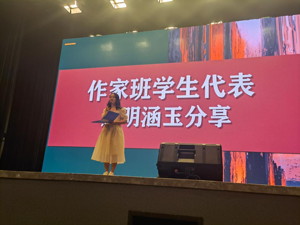 2020级作家班学生赵明涵玉同学也上台现身说法,向学弟学妹们讲述了自己上作家班的经历和感受,字里行间全都是欣喜与收获。