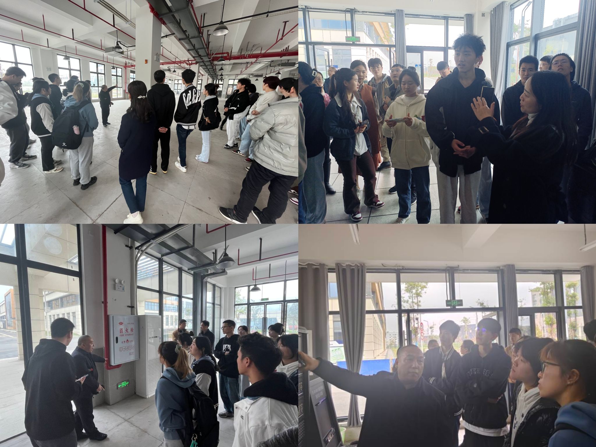 随后去往消防控制室与监控室,内设防静电地板,地下架空,室内设有应急照明控制器,火灾报警控制器,消防电话总机以及液位控制箱。起初同学们对这些设备都感到陌生与好奇,但经过王华老师和杨礼静老师的指导讲解,问题便云开雾散,迎刃而解了。