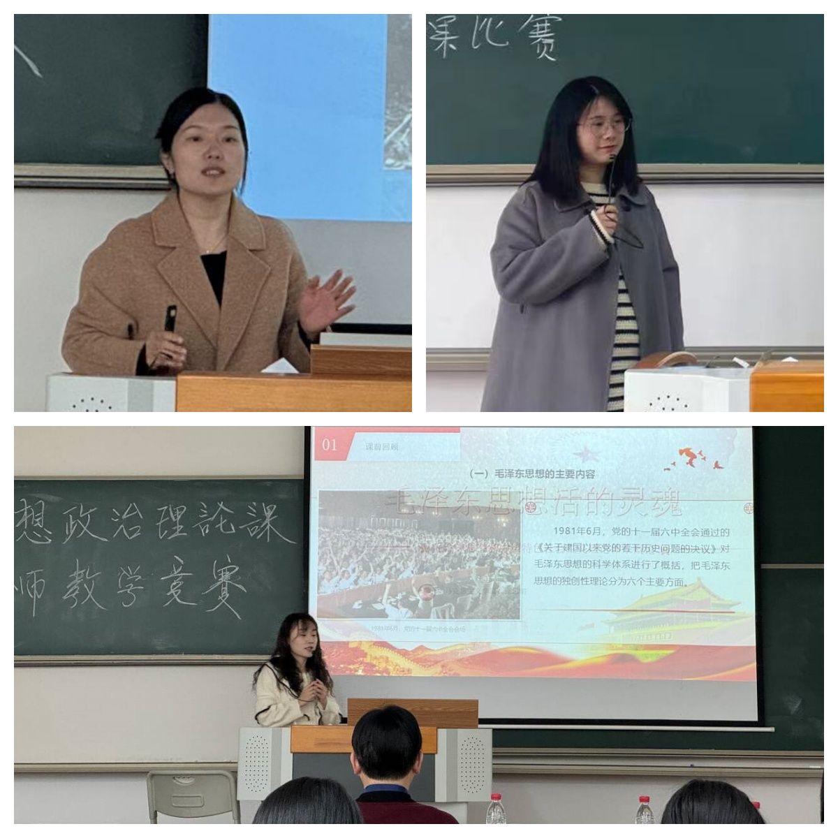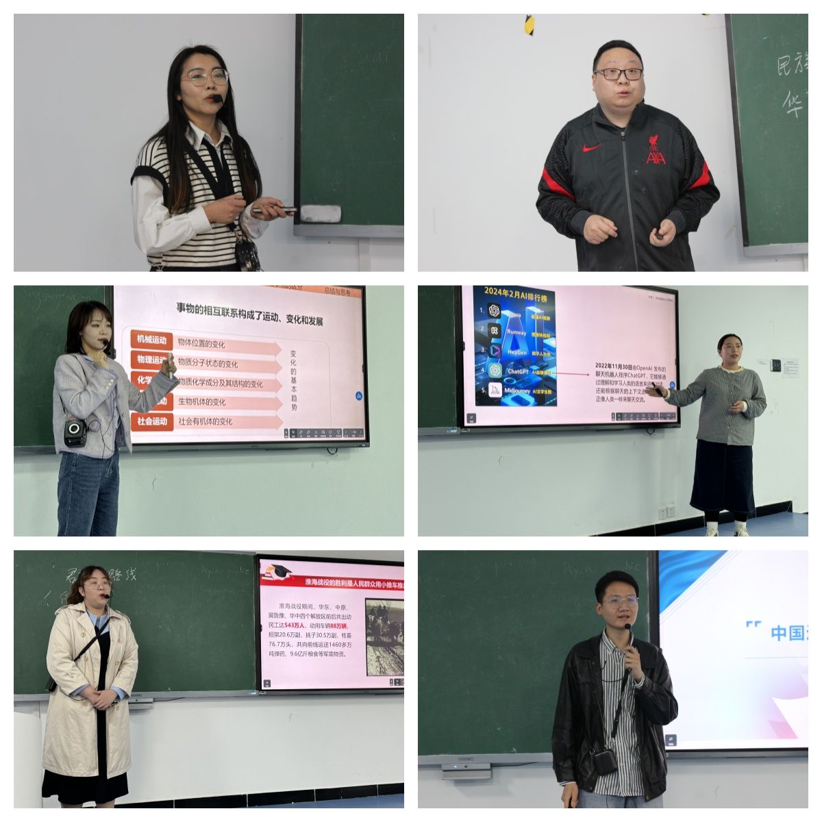一支粉笔书写激扬青春,三尺讲台尽显教师风采。参赛教师各显身手:杨丽娟老师结合史料讲解了“游击战的发展”,深入分析中国共产党的敌后游击战在抗日战争时期发挥的重要作用;黄必琼老师通过游戏互动讲解了“正确认识人的本质”;潘家玲老师从“两个结合”的角度阐释了实事求是是毛泽东思想活的灵魂;简云丹老师结合中国近代先进人士林则徐、魏源、康有为等的人生经历,给大家展现了中国近代民族意识觉醒的过程;贺铭钰老师运用数字化手段将实地调研搬进课堂,理论与实际充分结合,生动呈现了三线建设这一重大战略部署的过程、成就以及伟大精神等。