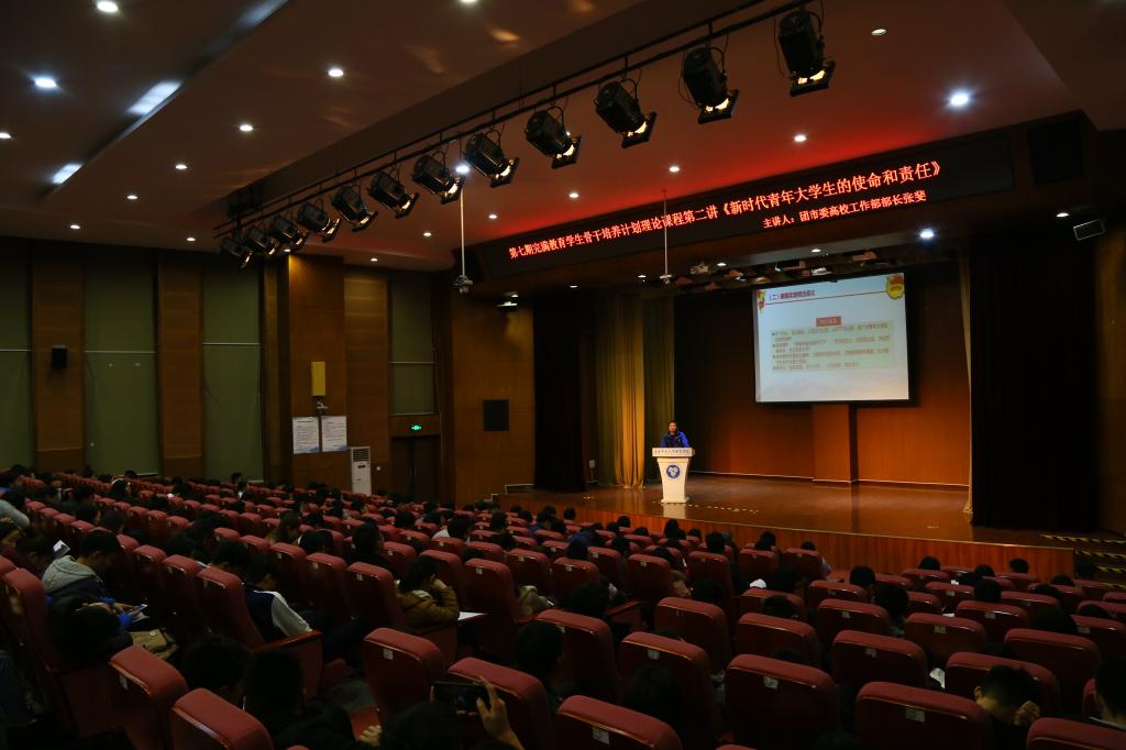 为进一步强化团干部培育与研究,牢固树立我校团员青年、学生干部的政治意识,核心意识,看齐意识,重庆邮电大学移通学院于2017年12月13日在下里巴人举行了第七期完满教育学生骨干培养计划理论课程第二讲。本次培训有幸邀请到团市委高校工作部部长张斐老师围绕《新时代青年大学生的使命和责任》这一主题,分别从如何理解新时代、习总书记青年工作思想、新时代大学生的使命和责任及高校干部的情怀与担当等四个方面展开培训。