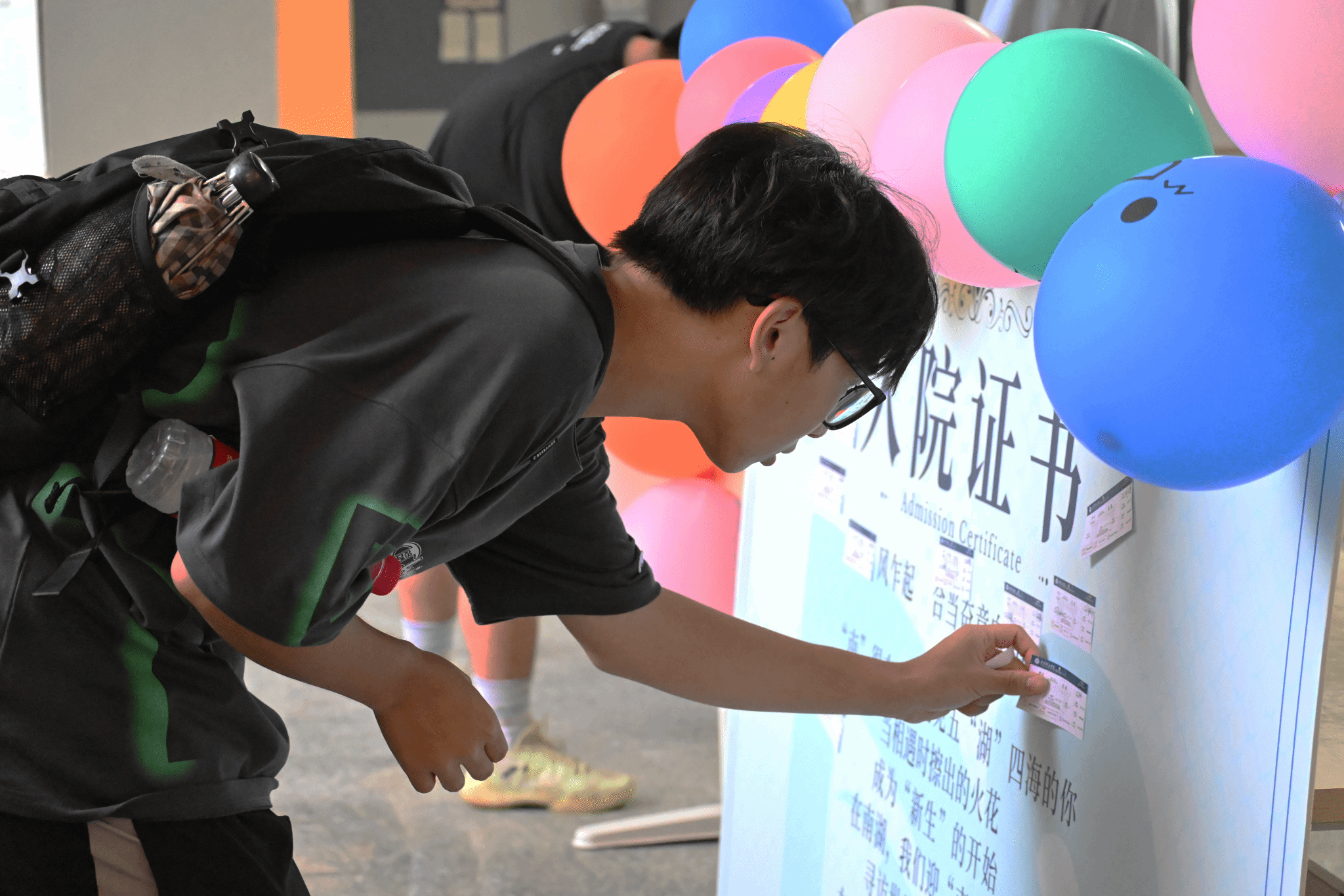 暑去秋意重,完满新出发。9月20日、22日下午,南湖书院分别于智慧教室、声影活动室开展了“一起‘新生’”2023级新生入院仪式与名誉院长开学第一课,200余位新生在现场感受书院家的热情与温馨、聆听院长与师长的祝福和寄语,开启完满书院生活新篇章。一张张专属定制机票“载”着新生落入南湖,给予新生们满分仪式感。随后,新生们在入院仪式现场聆听了莫光华教授录制的恳切寄语视频,在老师和学长的引导下,制定大学规划、制作专属“时间胶囊”、领取入院证书,迈出了完满生活的第一步。忠言伴身行,吾侪当奋勉。9月22日下午,莫光华院长来到书院,与南湖新生面对面畅谈,将祝福、期盼与建议融入殷殷关切的话语里,给新生们带来了印象深刻的开学第一课,勉励新生们在未来四年里努力学习、奔赴热爱,在南湖书院里、在完满教育氛围中磨练品质、积极成长,不负众望,成为有担当的南湖新青年。