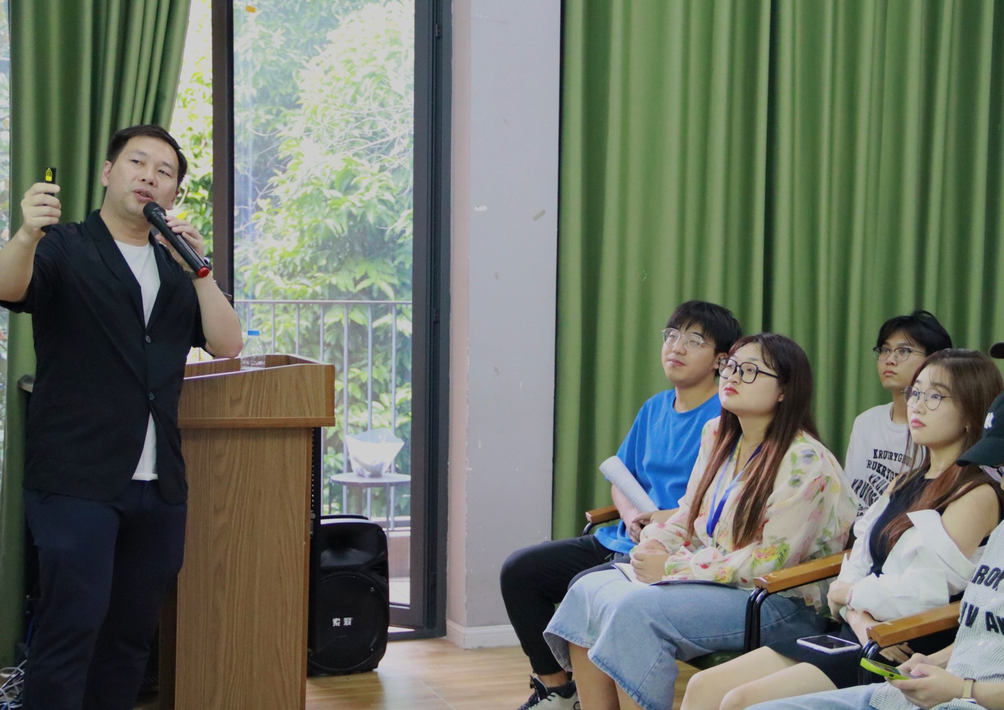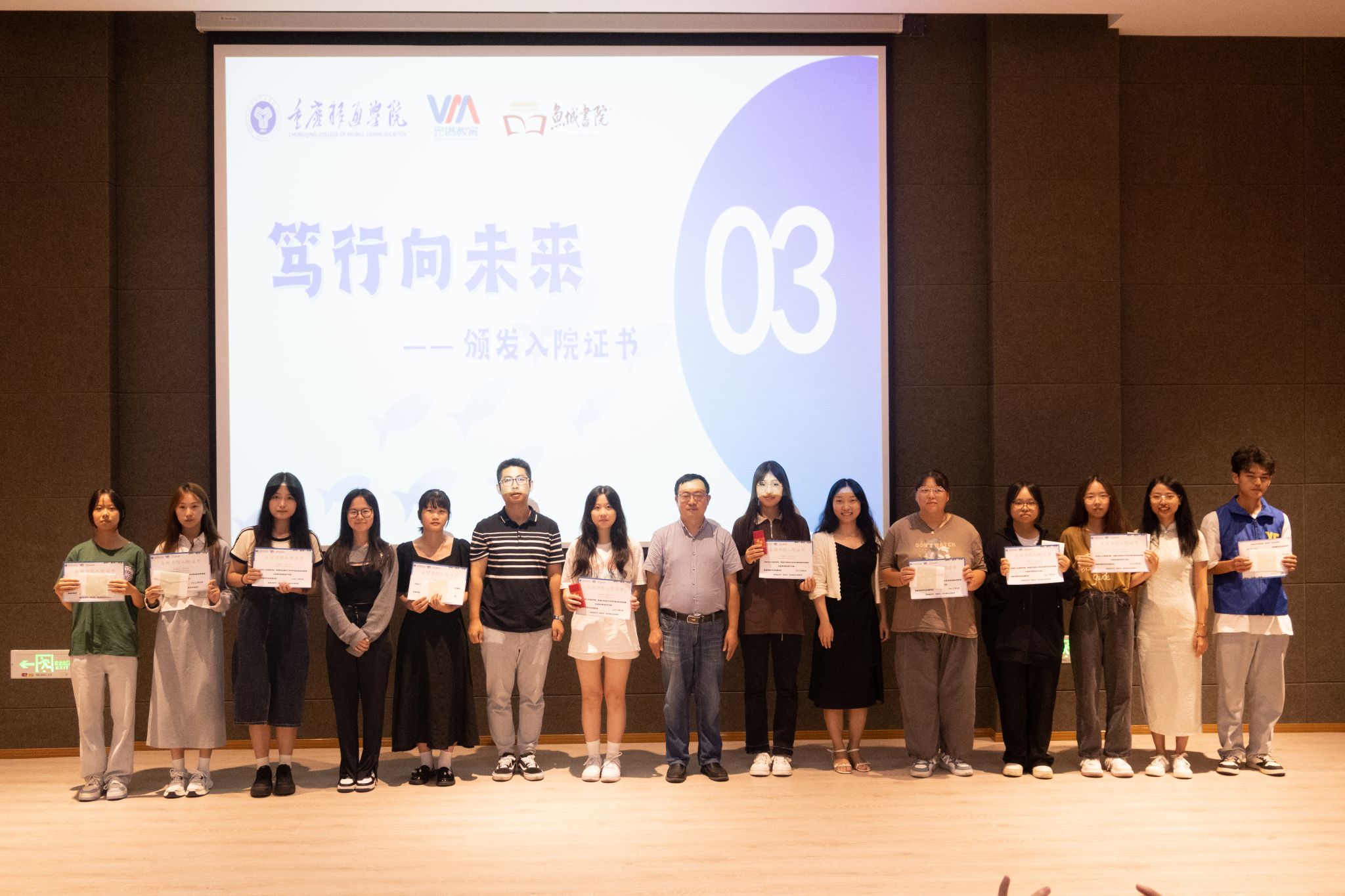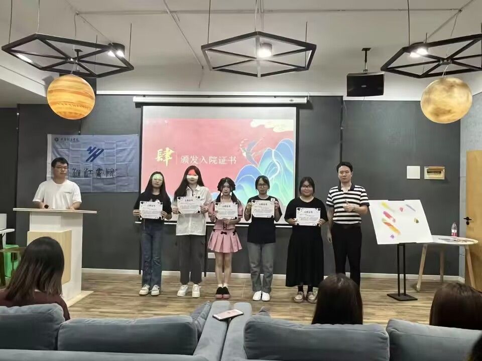 9月20日下午,重庆移通学院汇江书院名誉院长张鸣教授、汇江书院全体教师、汇江书院2023级部分新生代表共同参与本次入院仪式。汇江书院热烈欢迎每位新生的到来,通过新生“入门”的形式让同学们走进汇江书院,再用彩笔绘出全新的汇江logo,与书院共同“汇”出新生们与书院的精彩未来。在汇江书院优秀学生代表成员蔡晶分享后,汇江书院综合办公室主任杨成老师向汇江书院新生代表颁发入院证书以及汇江徽章,鼓励新生在汇江大放异彩。最后到了名誉院长张鸣教授授课互动环节,张院长给大家讲到:“对于成功的定义,我们要逐步实现有价值的理想,得到自己想要的结果”。本次活动表达对新生历经风雨终上岸的美好祝愿,激励新生在大学生活中敢于尝试、勇于逐梦。