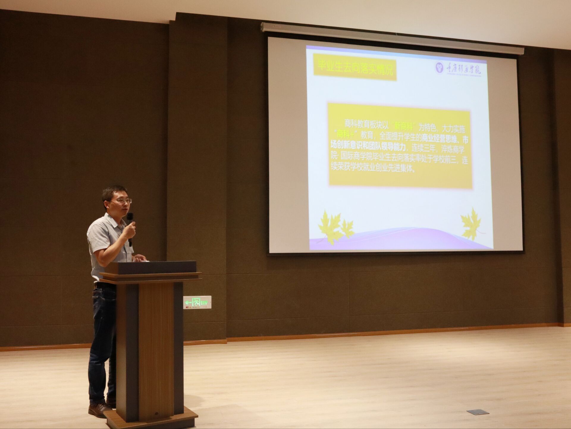 会议伊始,张平校助对学院2023届毕业生整体就业情况进行讲解,并对全院教师在就业工作中的辛苦付出表示感谢。同时,对于学院2024届毕业生的就业工作做出要求:面对当前严峻的就业形势,商院老师应以新市场、新理念、新模式、新技术为基础来培育新人才。作为教师不仅要指导学生学好专业知识、练好专业技能,还要大力加强对学生的职业教育指导,加强与学生之间的沟通交流,全方位了解学生的兴趣及优势,帮助学生制定相应的发展计划,协助学生找到高质量的工作。