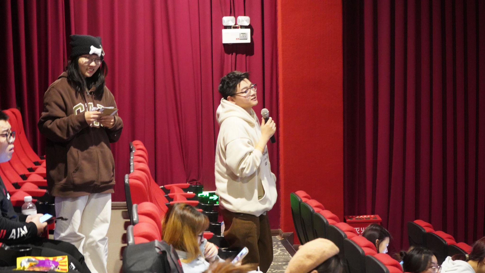 影片结束后,来自电影评论中心的嘉宾黄俊霖老师和来自电影协会的主持人谢丹阳社长共同组织完成了观影之后的交流活动。重温经典电影《泰坦尼克号》,同学们自然有很多想要讨论的问题和想法,交流会上,大家踊跃举手,积极提出疑问,并交流对影片的感受,同学们和黄俊霖老师纷纷表达了自己的看法。