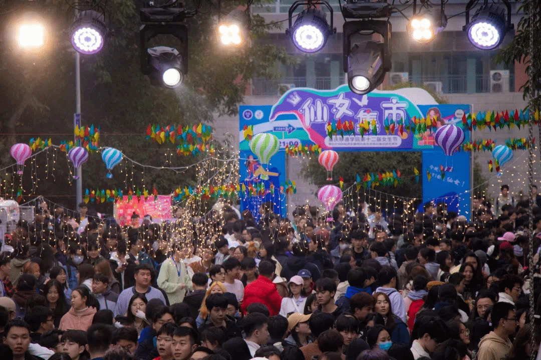 3月7日,由我校合川校区团委、学生会打造的“仙女集市”准时开市!30余辆汽车纷纷打开后备箱,装满全校送给女生节的礼物,6871名同学报名活动,现场参与人次超10000。标新立异的摊主、装满鲜花的后备箱、人声鼎沸的现场,集结学校学生社团、书院、学院关于移通女孩才艺/爱好/兴趣/气质等60余个互动项目。