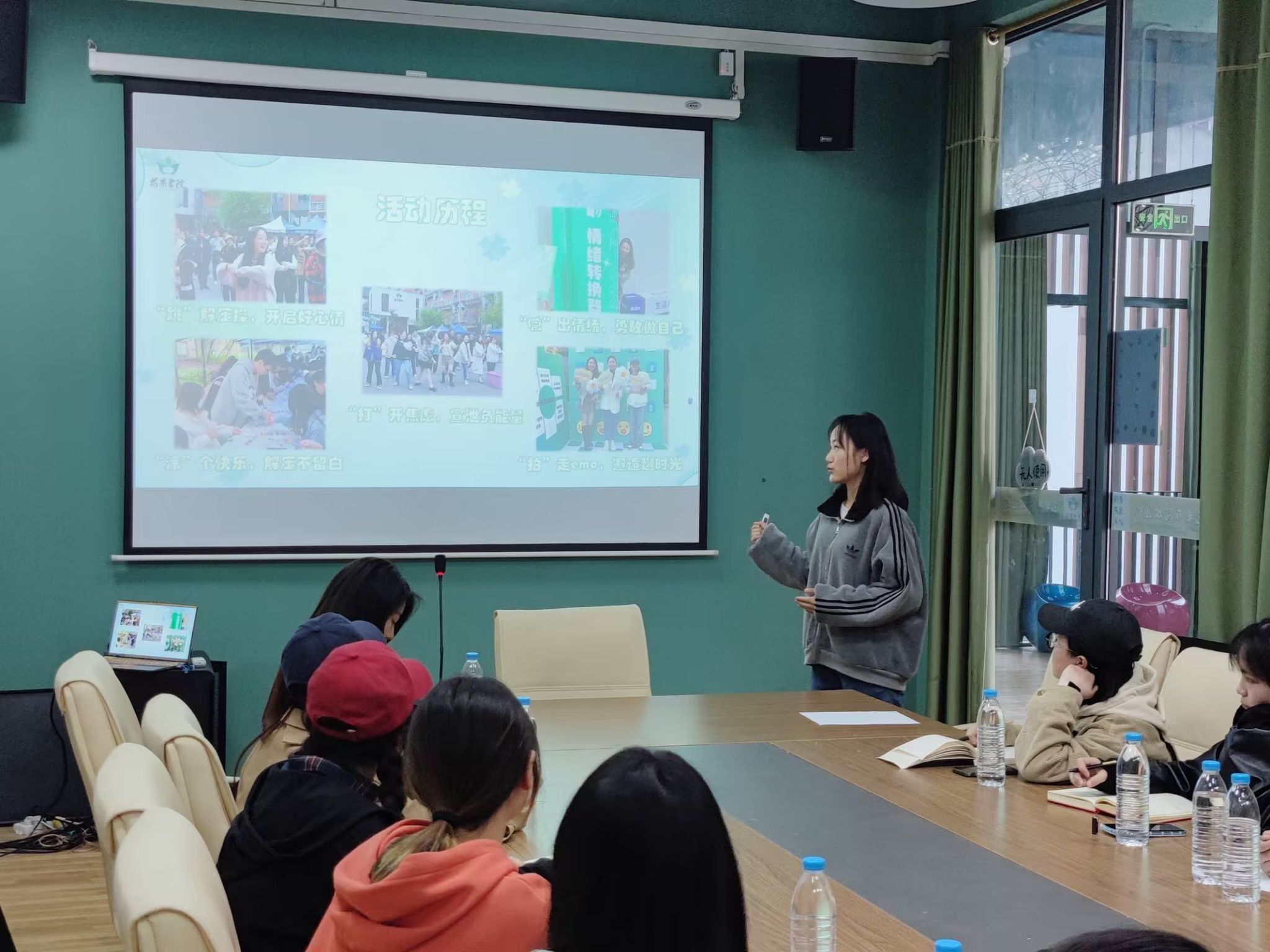 会议伊始,两院师生代表依次进行自我介绍,为双方建立了初步的了解。随后,外国语学院青年志愿者协会部长蒲杰和花果书院文化推广部部长杨丽林分别对“解忧杂货铺”系列活动、“焦虑卸载站”——花果书院心灵“减负”特别活动进行了详细介绍,解析活动内容和活动亮点,总结过往工作中出现的问题。双方从广大同学的需要出发,就如何适应学生心理健康发展、进一步营造温馨校园、开展特色心理健康教育活动交换意见。
