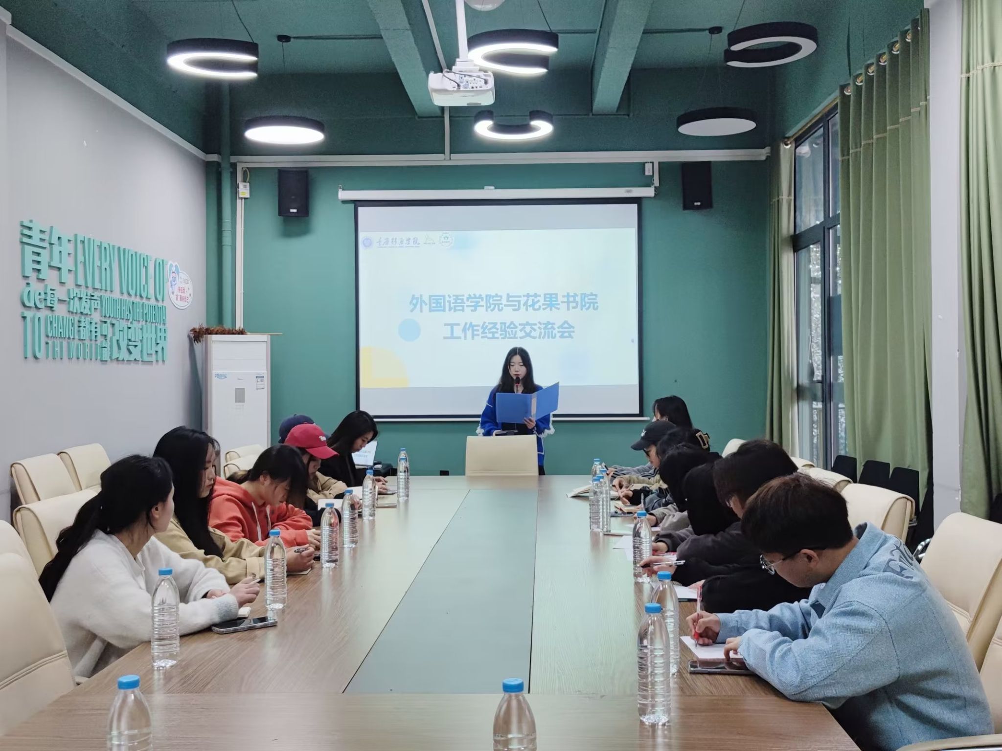 为贯彻落实我校“四位一体+双院制”特色育人模式,拉紧双院合作的共同纽带,为学生提供更具特色、符合需求的特色活动体验。4月7日下午16时,外国语学院青年志愿者协会与花果书院在花果书院大型会议室201开展“协同育人,护航成长”主题交流会。本次交流会由双院师生代表15人共同参加,围绕为广大学子营造心理健康发展的环境,搭建解决学生心理问题的平台,助力广大学子身心全面发展的主要内容进行深入探讨。
