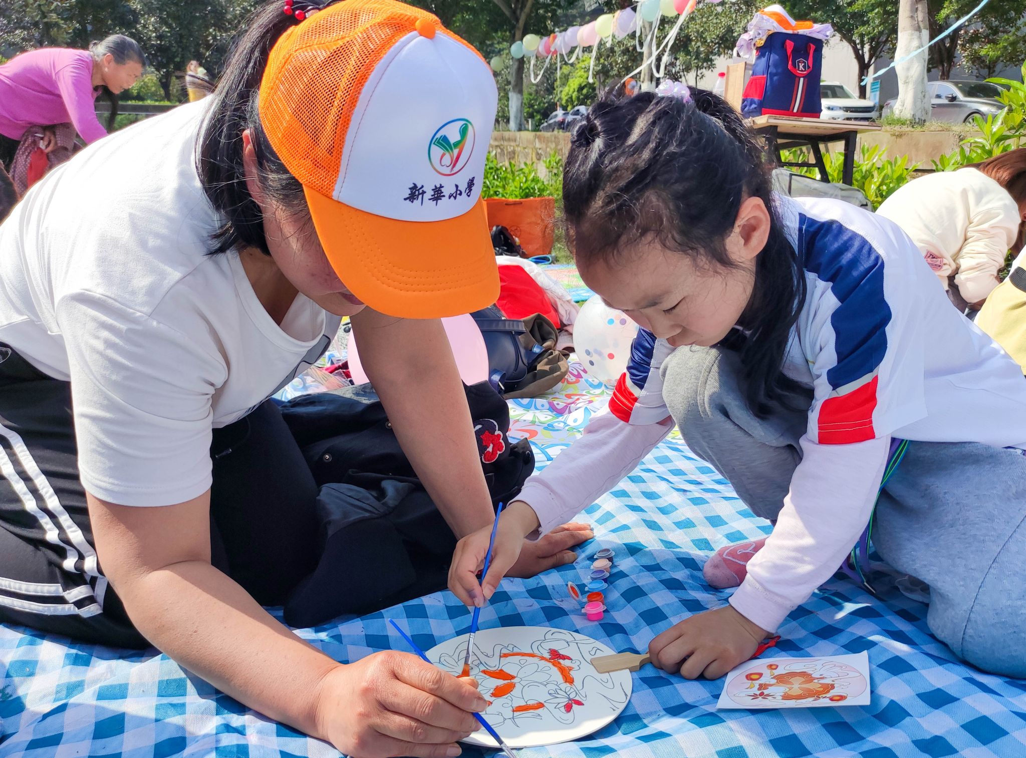“绘”春光,描“玉兔”,亲子共创纸团扇。在志愿者们准备的团扇上,“亲子”共同执笔将快乐时光的暂停键化作五彩斑斓的颜料,“玉兔”、“蝴蝶”、“迎春花”等跃然纸上,栩栩如生,最后孩子们一起展示的不只是画作,也是亲子距离拉近的见证。共绘团扇不仅锻炼了家长们陪护孩子时的耐心,更是将团扇的文化内涵种植在了小朋友们的心中,提升了孩子们的传统文化素养。
