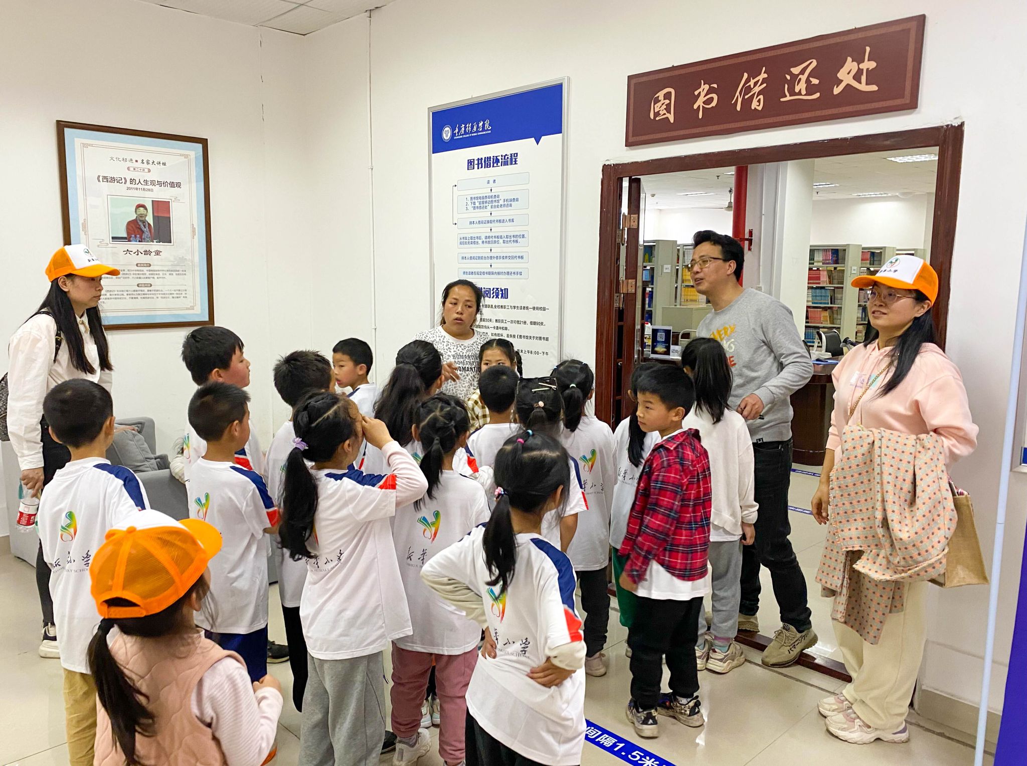 校园行,亲子游,志愿服务在路上。下午志愿者带领小朋友们游逛了重庆移通学院,从图书馆到南湖书院的展厅,再到双子湖以及“哥哥姐姐”们学习的教室,最令志愿者们和家长们动容的还是孩子们在图书馆中畅谈自己未来的样子。“我想成为老师!”“我想成为科学家!”······各式各样的理想在重庆移通学院图书馆的书架前扎了根、发了芽,那不仅是志愿者们带他们游逛的一次经历,也是重庆移通学院带给新华小学孩子们的“大学初体验”。