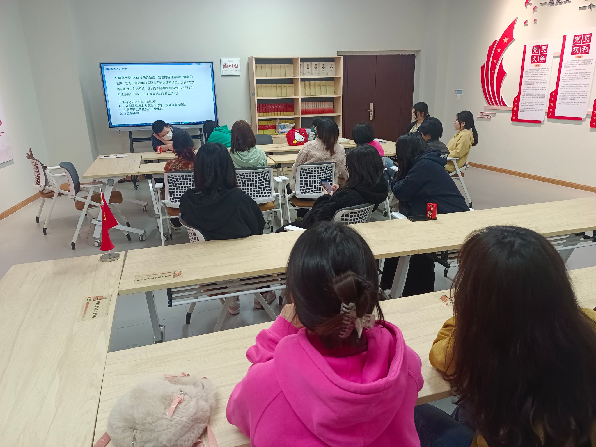 活动开始,张磊老师就刚刚的扫码环节提醒学生,虽然大家出于对老师的信任才扫码填写个人信息,但“熟人作案”的各种案例屡见不鲜,还是希望同学们能提高警惕,保护个人信息安全。而后,张磊老师就大学生日常使用网络时应注意的情况与大家分享,通过网络行为安全、网络交易安全、网络交友安全三个方面出发,分别说明了这些网络行为可能遇到的问题和防范的方法。使用网络,不随意填写个人信息,不发布详细个人定位,不点开来历不明的链接,不轻信各类先付钱的就业信息。网络交易中,不轻信“商家”的短信或电话,选择靠谱的购物平台,不私下交易,付款密码的单独设置等。网络交友不泄露个人信息,不轻易见面,不要涉及金钱往来。随后,又通过竞答环节,将日常所面临的各类陷阱如投票链接、陌生人加微信、扫码送礼物、“10086”发信息等情景作为题目,帮助学生提高警惕,树立网络安全意识,保护个人信息和财产安全。