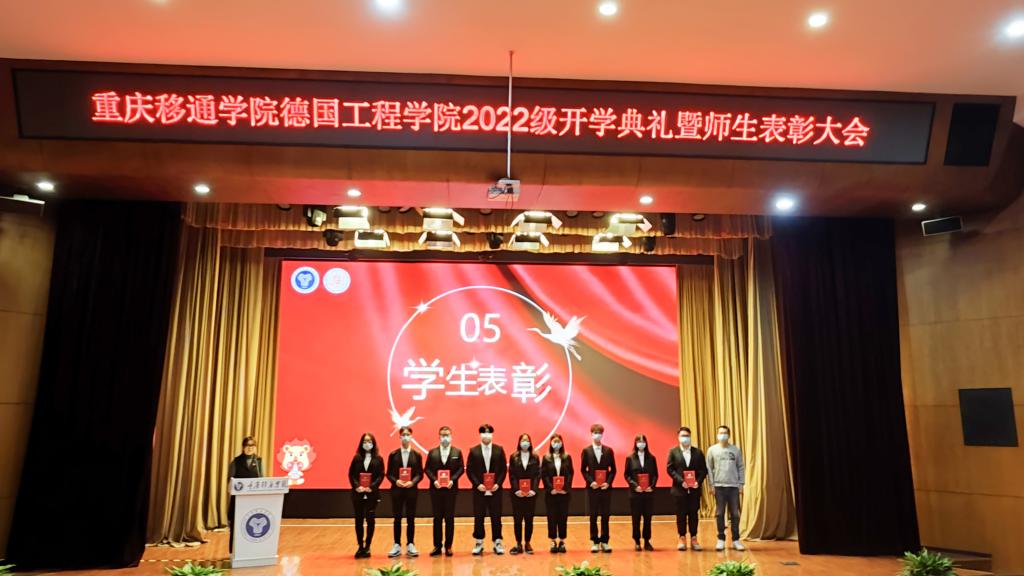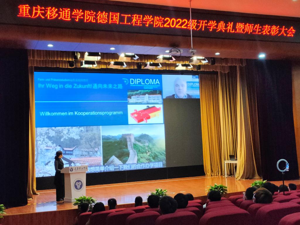 金秋十月,略有些许的寒意,但遮挡不住2022级新生昂扬的浩然之气。10月26日下午,重庆移通学院德国工程学院2022级开学典礼暨师生表彰大会在下里巴人剧场隆重召开,并于南湖书院声影活动室和中德创意工坊设立直播分会场。典礼由德国工程学院副院长侯宇晶主持,重庆移通学院校长助理尹浩亮出席典礼,2022级教师代表和辅导员、师生表彰代表及新生代表共同参加。