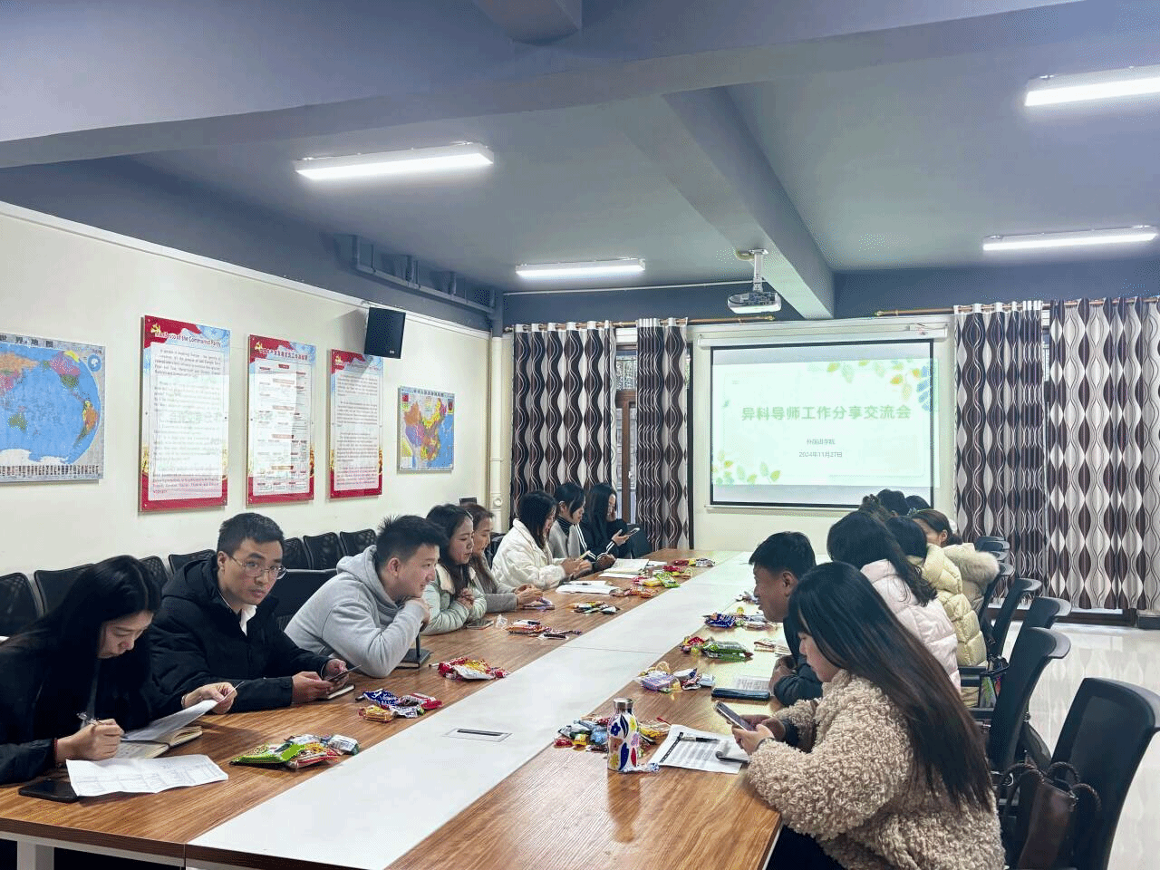 在就业形势日益严峻的当下,一场聚焦大四学生就业问题的外国语学院异科导师交流分享会于11月27日下午4点在荷悦112会议室开展。此次会议旨在汇聚各方智慧,为即将踏入职场的大四学子指明方向,提供切实可行的就业指导策略。参加本次交流会的有:外国语学院辅导员吕戈、兰鹰、屠建丽、刘佳昕老师以及目前担任2021级本科、2023级专升本学生的异科导师们。