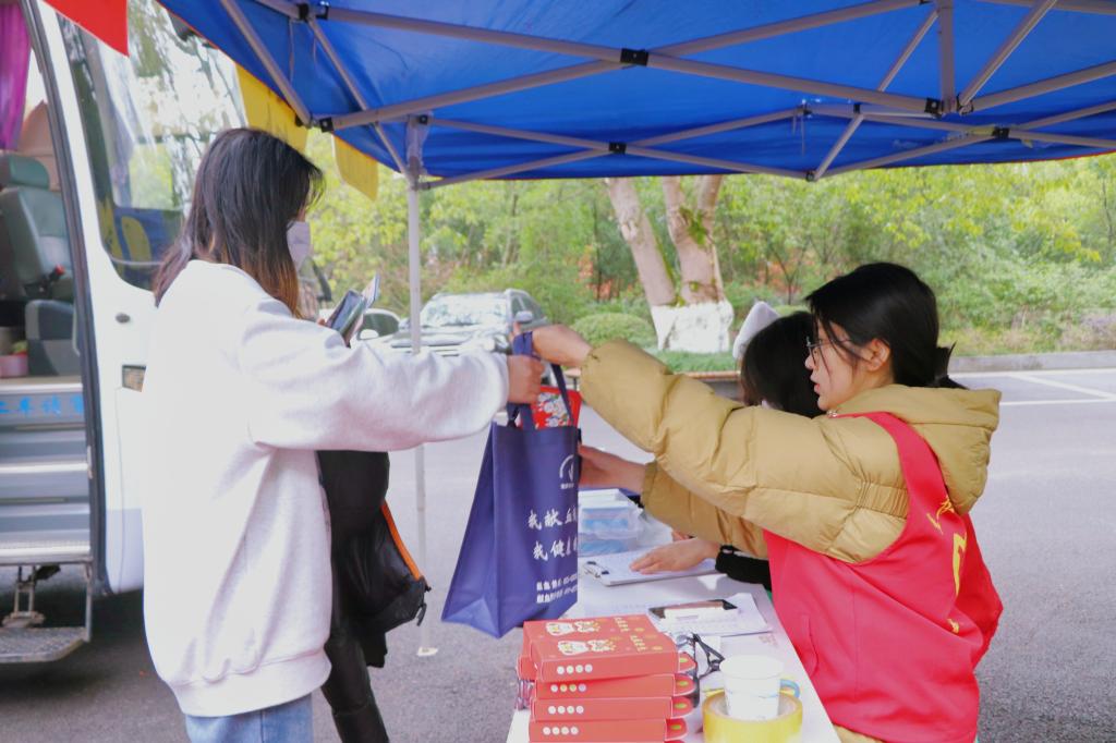 为吸引更多的移通师生加入献血的行列,此次活动在文峰食堂前设有礼品区、宣传打卡点及服务点,140余名志愿者热情服务。填写信息、挽起袖子检查和测量,有序进入献血车,等待护士进行采血工作。冰冷的针头展现在眼前,大家丝毫不减献血的决心,将献血工作进行到底。献血过程中,血站的医护人员及志愿者时刻关注着同学们的身体变化情况,适时的为同学们递上一杯温热的葡萄糖水,让同学就坐休息处,并且告知相关注意事项。采血结束后,师生们都会得到一份小礼品,台灯、雨伞、枕头……,但沉甸甸更在意的是手里的献血证,一张纸都代表着移通师生们温暖的爱心。