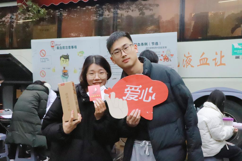 医护人员在交谈中了解到很多同学是第一次献血,也有近两年都一直坚持参加献血的同学,更有许多老师也加入其中。献血结束后,一名同学左手拿着献血证,右手抱着小礼品,幸福地表示:“参加这次献血活动是非常有意义的一件事,可以为那些需要血的人提供到一点点的帮助是一件很值得的事的,以后有机会会继续参加无偿献血。”血液是生命的源泉,无偿献血,传递人间真情,同学们捐出一份热血,献出一份真情,关爱他人关心社会。