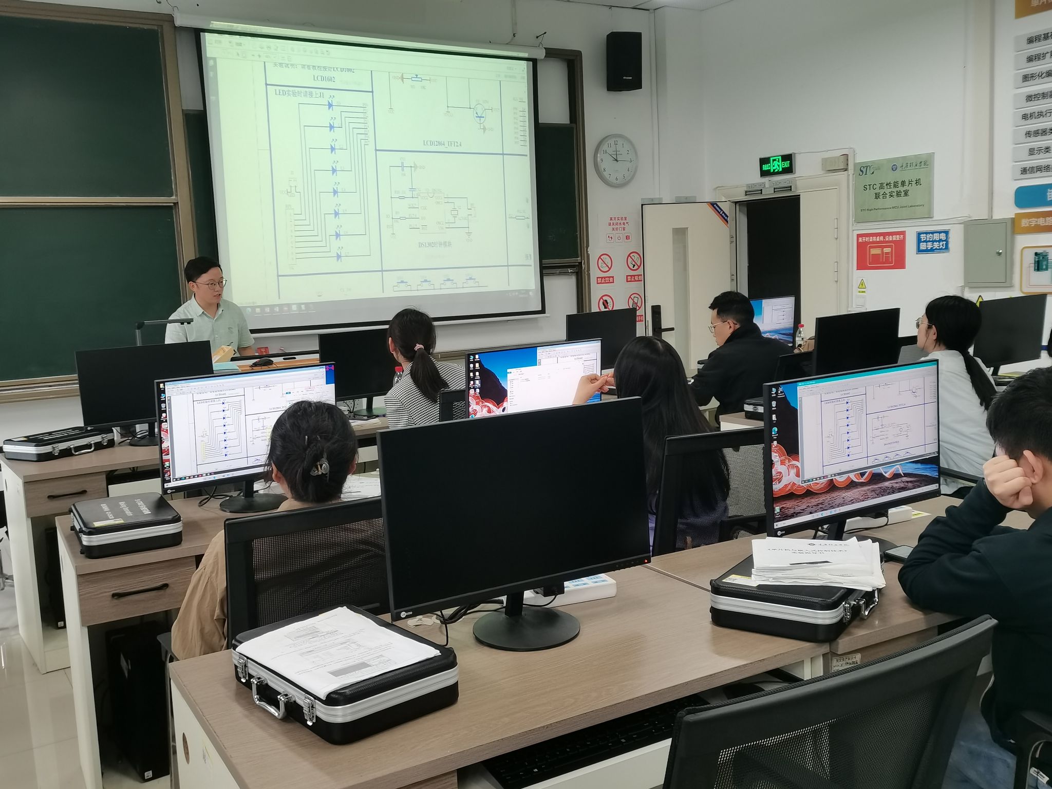随后,蒋冬政老师以单片机实验为例,进行了一次精彩的实验示范课分享。他详细介绍了实验模块的使用方法、注意事项以及备课经验,并强调了在教学活动开展前充分分析学情的必要性。蒋老师还演示了如何使用与实验模块配套的开发工具、实验手册等,并指出实践教学要从教学大纲、指导书、教学内容覆盖面等多方面综合考虑,以确保实验效果和质量。他鼓励实验教师要勇于创新,进一步拓展综合性、设计性实验,以提升学生的实践能力和创新能力。