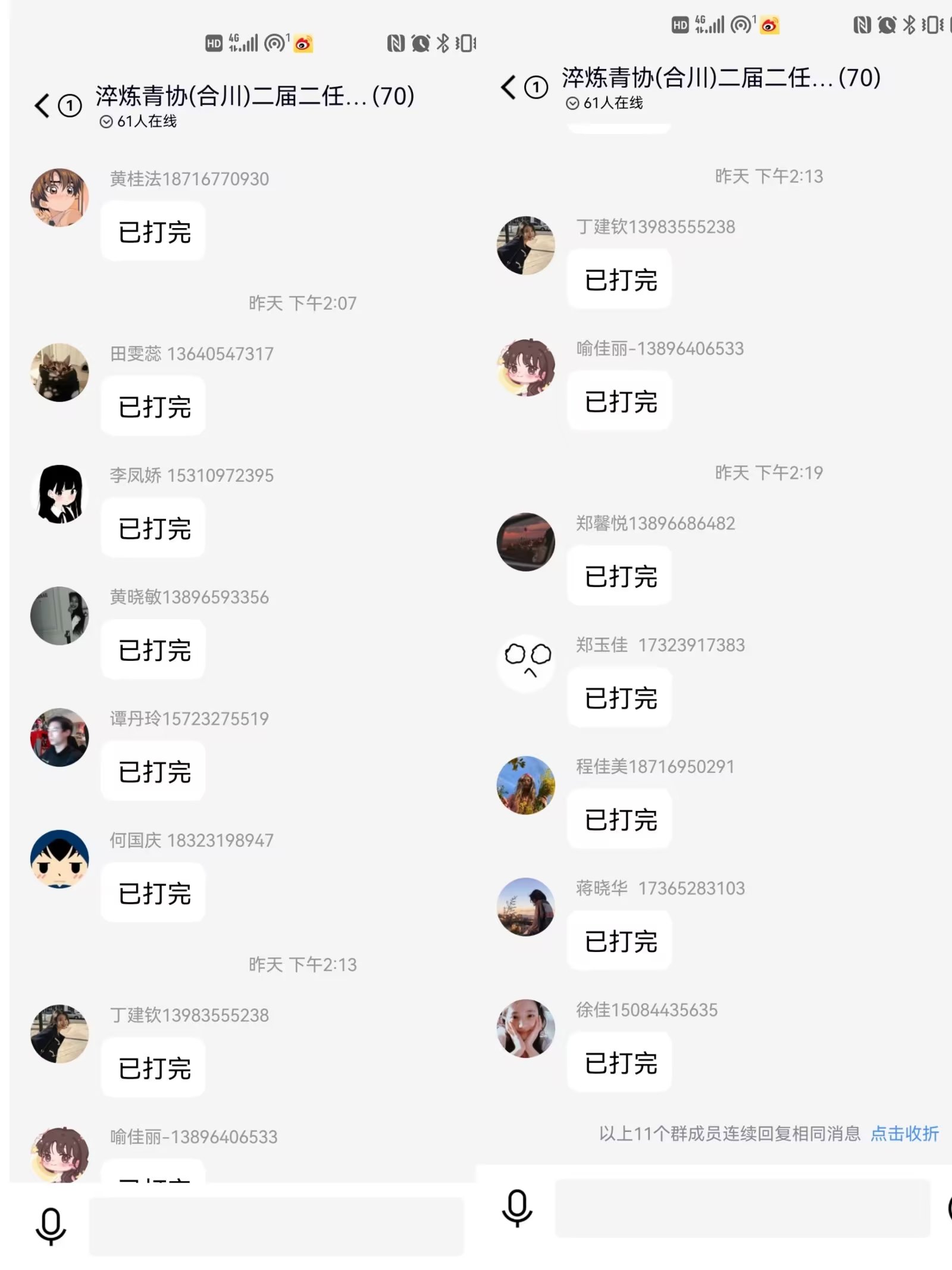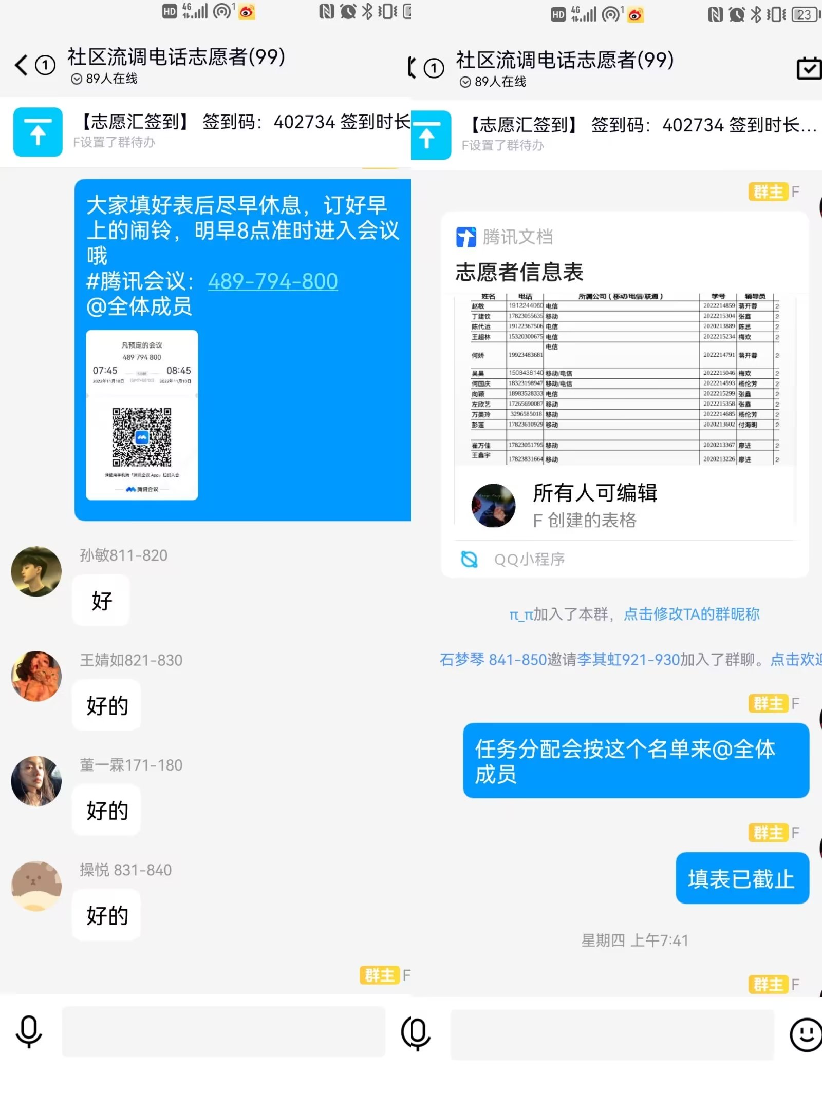 疫情当前,责任在肩,志愿者们想居民之所想,急居民之所急,与社区工作人员心心相印。早早地开始了一天的电话流调工作。在流调过程中,志愿者表示:“当自己看到工作内容时,觉得比较轻松,只是拨打电话咨询信息而已。但当自己工作了2小时仅完成8通电话任务时,才深感社区工作者的不易。”在打电话的过程中,会遇到各种各样的阻碍,电话打不通、个别通话对象态度消极以及不配合、年龄较大没有智能手机无法确认健康码等情况。志愿者们耐心解答了所有问题,整个过程虽有一些插曲,但可以为合川防疫工作贡献一份力量,这让志愿者们感到满满的成就感。