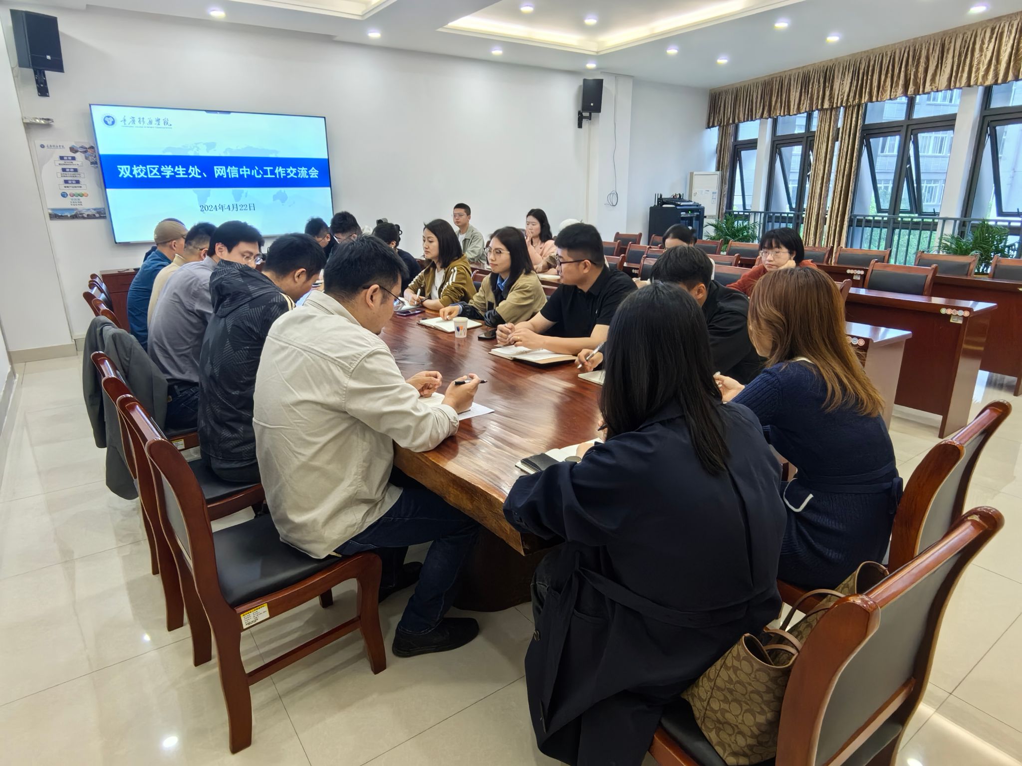 为进一步加强双校区学生处、网信中心工作的交流与合作,提高工作效率和服务质量,4月22日上午10点,我校在417会议室举行了双校区学生处、网信中心工作交流会。本次交流会由合川校区学生处处长陈帅主持,校党委副书记、常务副校长周伟,校长助理梁少锋,学生处、网信中心部门负责人及各科室科长参与交流会议。
