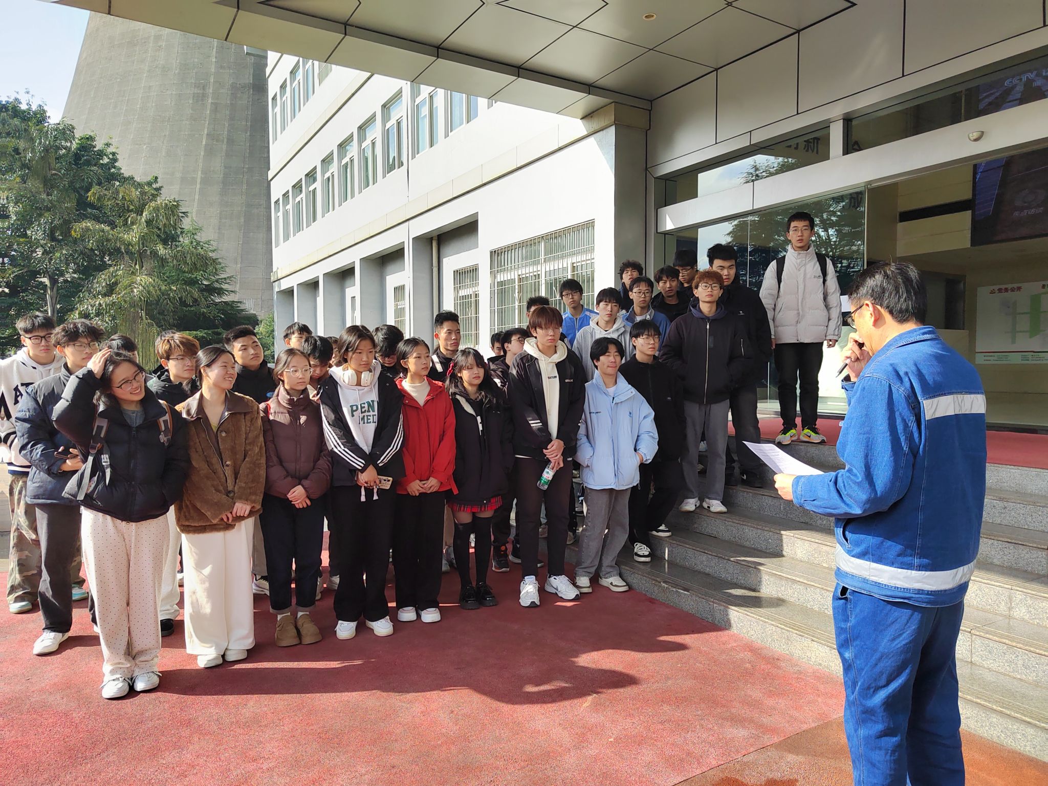 智能工程学院师生抵达国家电投重庆合川发电有限公司后,首先得到了企业吴主任的热忱欢迎与接待。吴主任为师生们详尽地介绍了电厂的基本概况,涵盖其一路走来的历史沿革、现有的生产规模、独特的技术特点,以及在保障当地电力供应方面所占据的重要地位等多方面信息。接着,电厂的工作人员认真地向大家阐释了进入厂区必须遵守的安全注意事项,随后便引领学院师生开启了此次参观之旅。