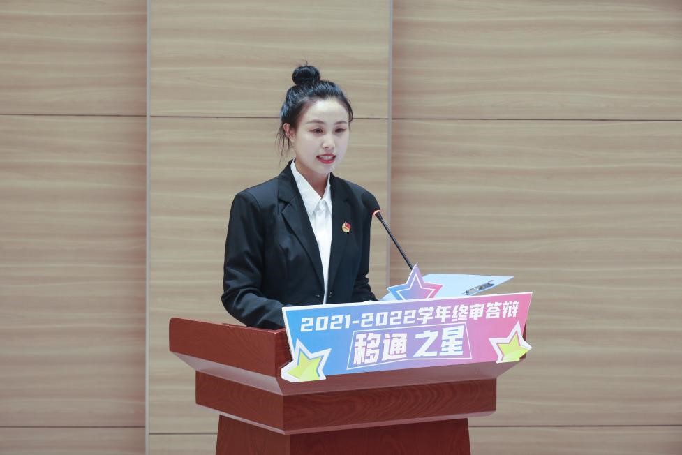 为了更好地完善学生培养体系并全面推进完满教育,按照“重奖励,典型引领、全员参与,形成品牌”的思路,以“让移通感动学生,让榜样引领学生,让典型教育学生”为评选目的。经过前期的自主申报、学院初选、“移通之星”评委会核审材料,从申报的120名学生中确定100名“移通之星”候选人入围,在2022年6月8日、13日开展“移通之星”终审答辩大会。