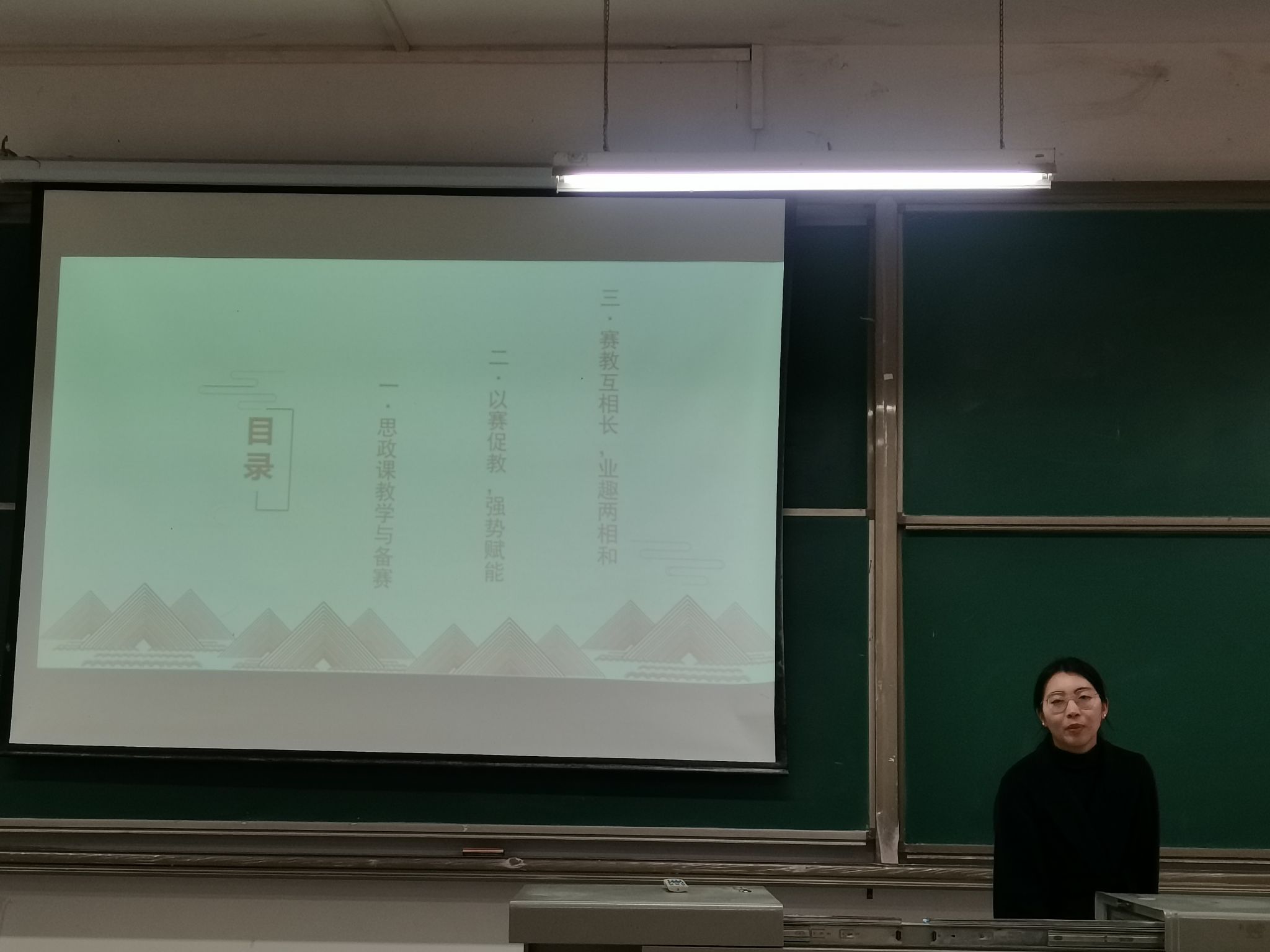 为积极响应我校“内涵建设与质量提升”主题年活动,增强教师教学能力,马克思主义学院思想道德与法治教研室于3月13日在1209开展了一场关于思想政治理论课教学展示活动竞赛经验的培训分享会,会议由李潇潇老师做交流分享,思想道德与法治教研室老师参加。
