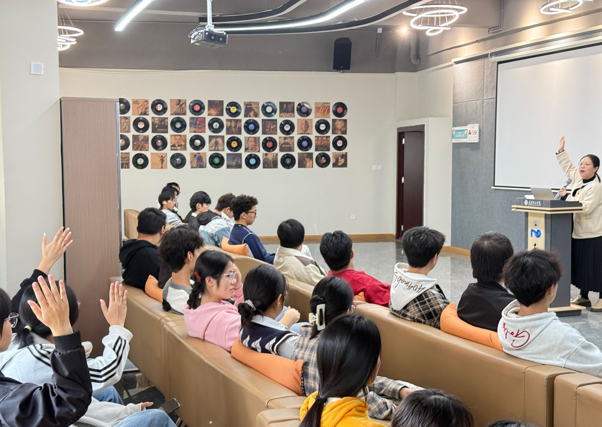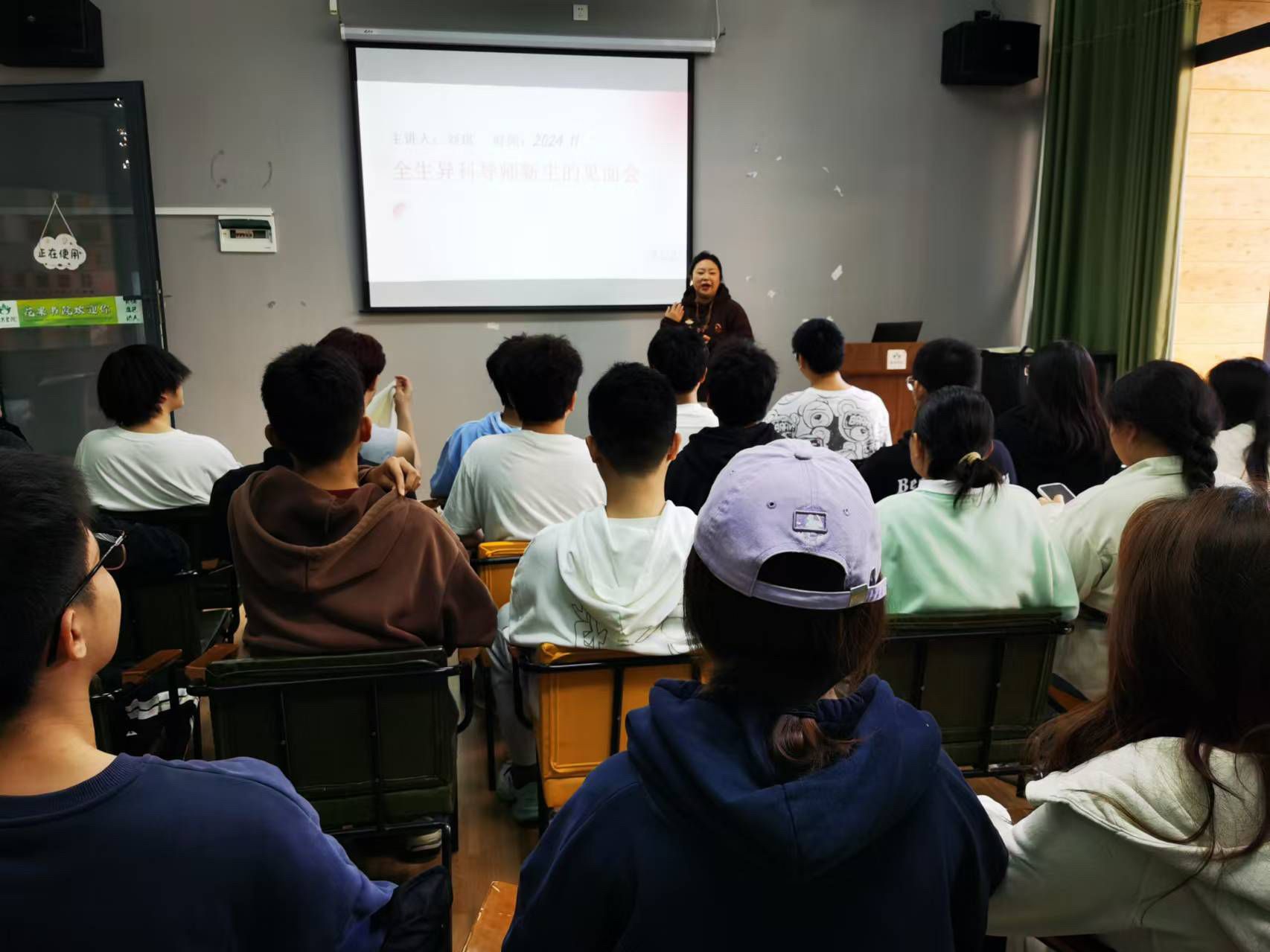 教师刘琪首先进行自我介绍,并介绍异科导师的主要职责,导师可为提供个性化的指导和成长规划,通过互动交流。如沙龙分享、组织团建等,以增进师生之间的了解和信任。这些活动可以创造轻松愉快的氛围,让学生敢于表达自己的想法和困惑,导师则通过倾听和解答,为学生提供心理支持和学业指导。在自由交流环节,学生们纷纷向老师提问,话题涵盖了异科导师的日常活动内容、大学期间学习方法、跨学科项目合作等多个方面。刘琪老师耐心解答,不仅提供了宝贵的建议,还鼓励学生主动勇于尝试不同领域的学习与研究。