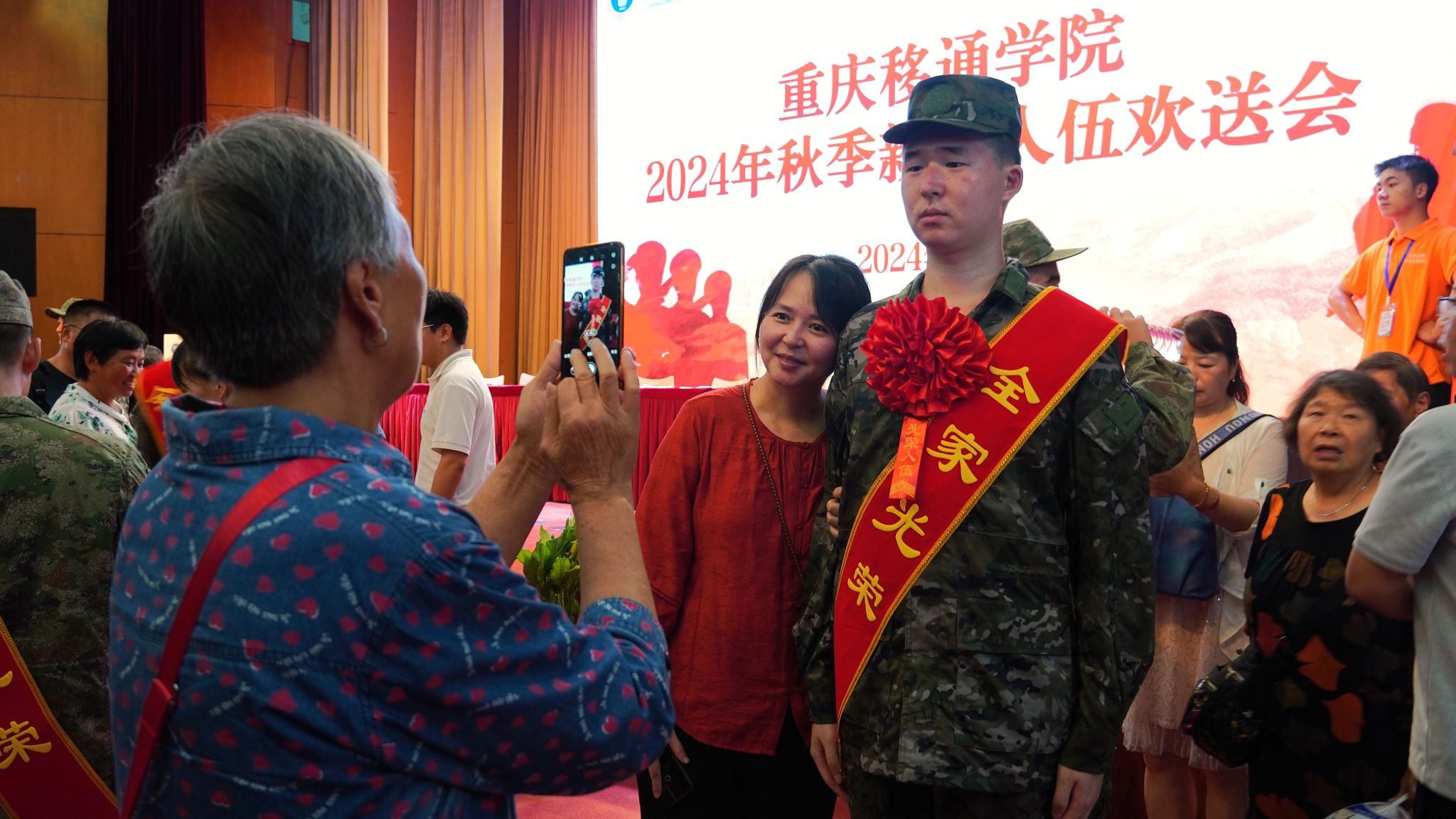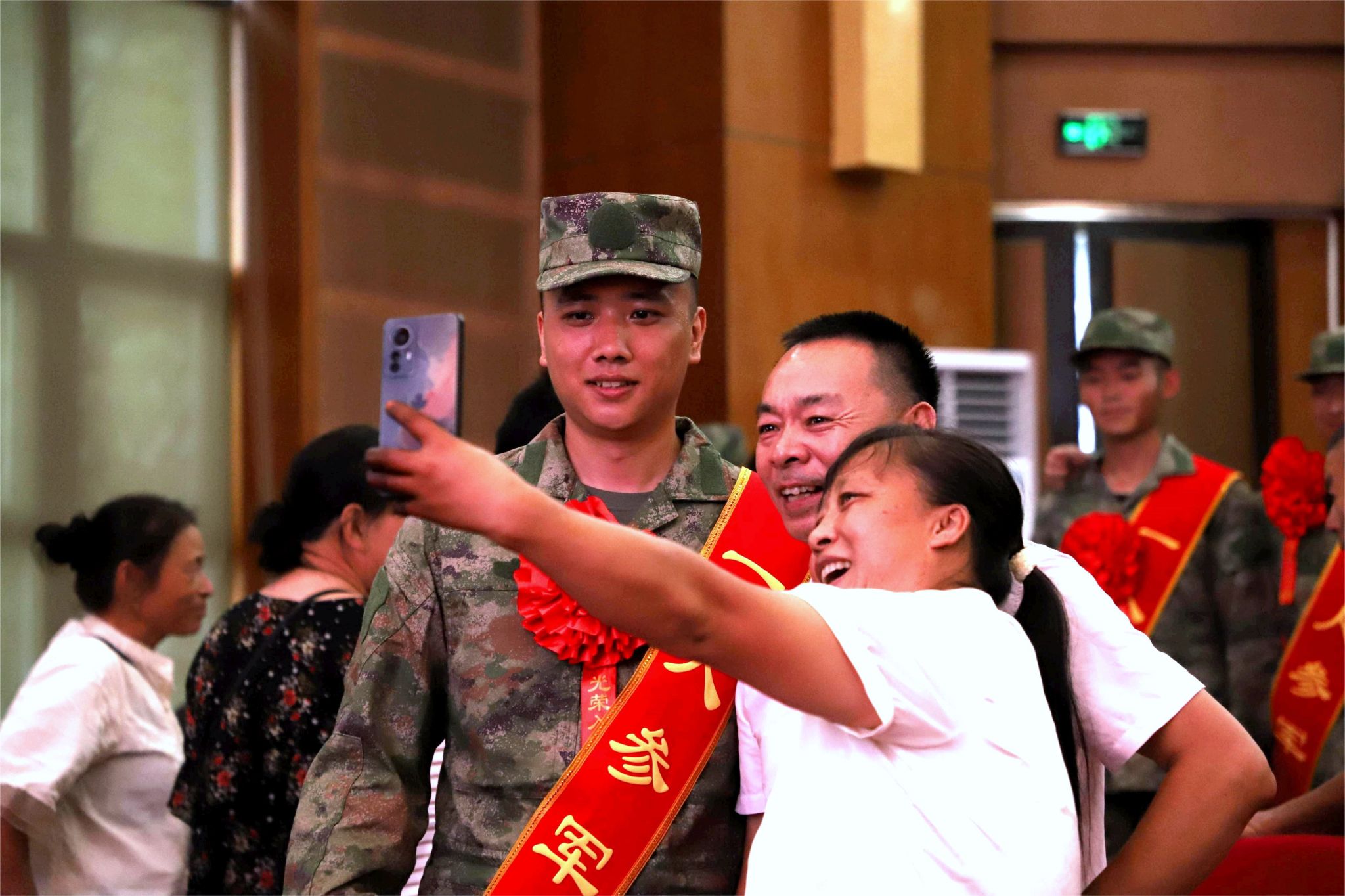 拳拳报国心,依依惜别情。仪式结束后,新兵们与父母、朋友拥抱、合影留念,互相为对方送上最真挚的祝福,予以殷殷嘱托,家长们望着身着崭新军装的孩子,虽有不舍的泪水,但更多的是对孩子长大成人、从军报国的自豪与欣慰。