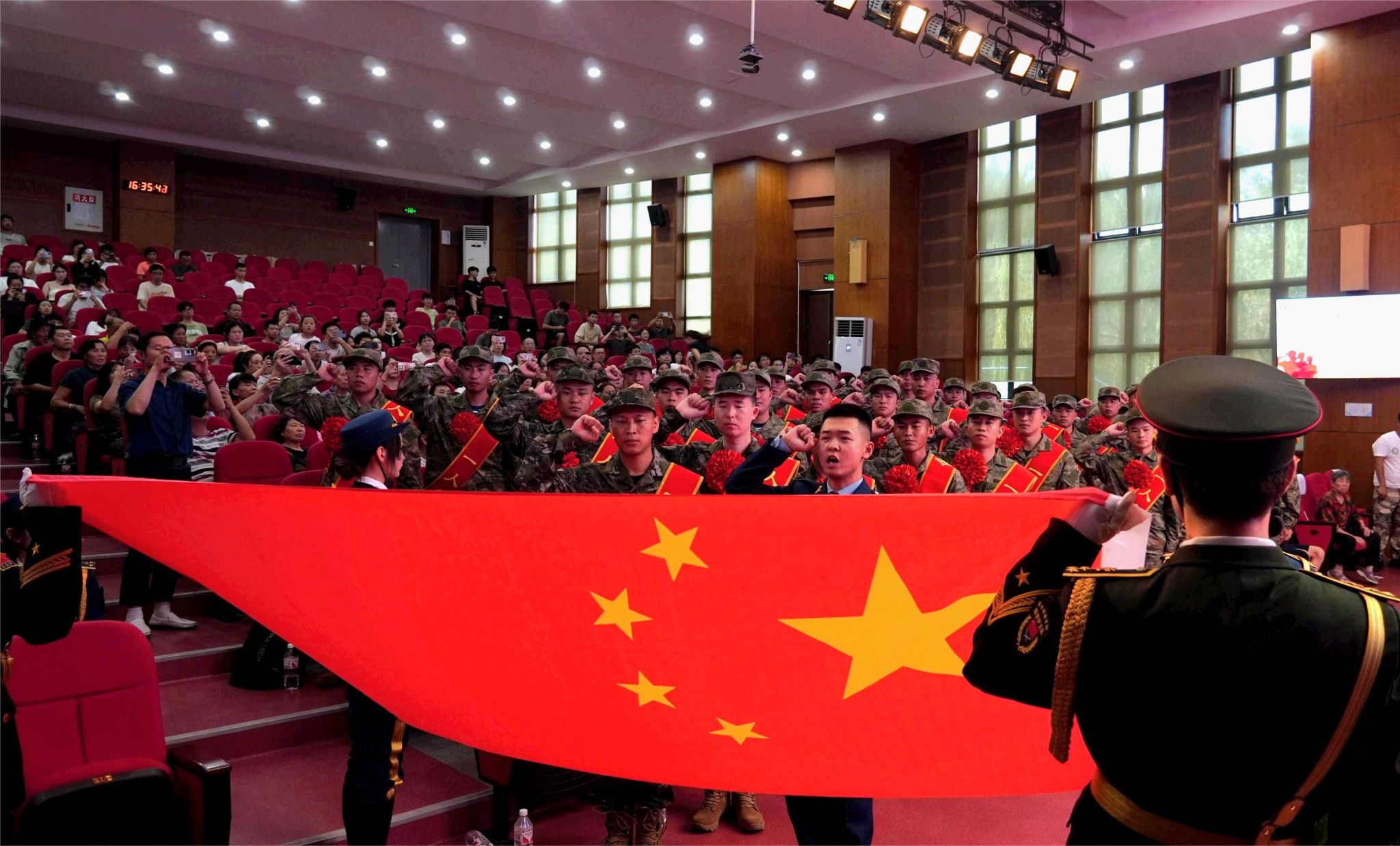 在退伍老兵于佳辉的带领下,全体入伍新兵精神抖擞,身姿挺拔,高举右拳,集体宣誓,“我是中国人民解放军军人,我宣誓……”发出的铿锵誓言在会场上空久久回荡。