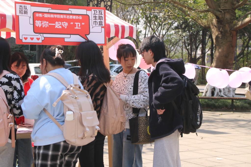 值得一提的是,在等你一起守“卫”(支队招新)打卡区,活动受益者蒋霞同学秒变“红马甲”,“顶岗”体验卫生巾发放活动,并积极主动为同学们介绍此次活动及其背后的意义,这一行为吸引了驻足停留的同学们,他们纷纷效仿,主动申请加入SHE关爱女性志愿服务支队,成为“她力量”的一员。