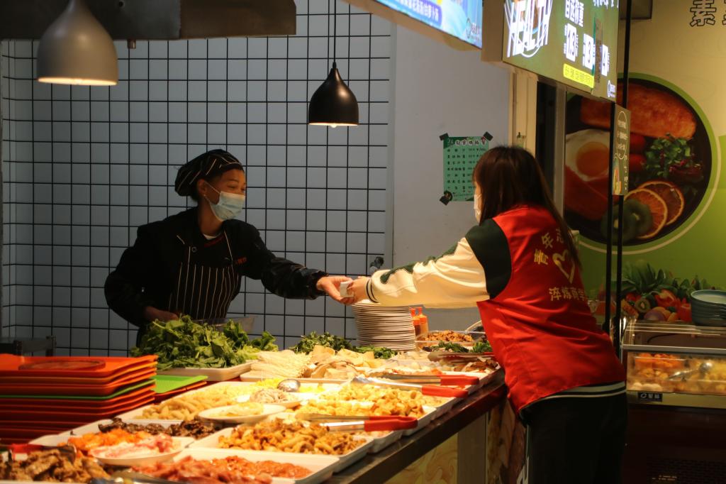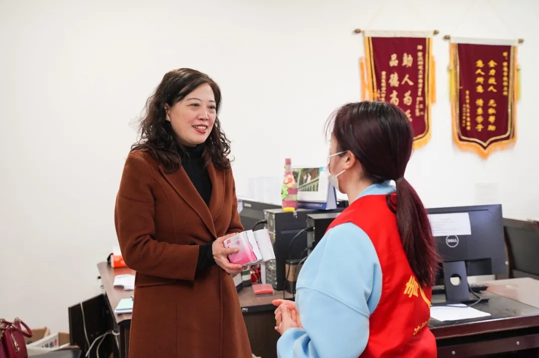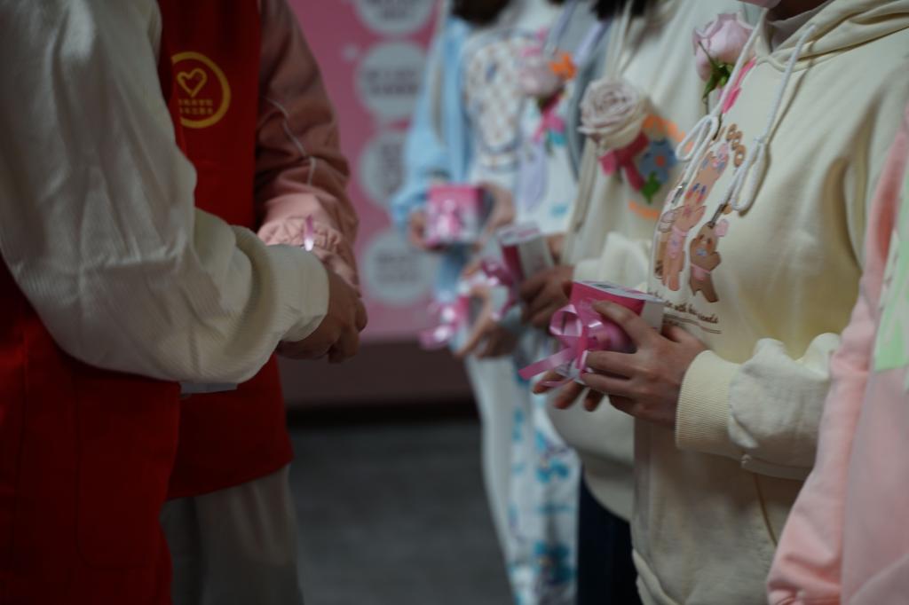 除了两条粉色长廊以外,SHE关爱女性专项支队的志愿者们还携带卫生巾来到书院、食堂、行政楼、心理中心、宿管中心、教师办公室等部门向每一位工作在一线的老师们表达节日祝福。
