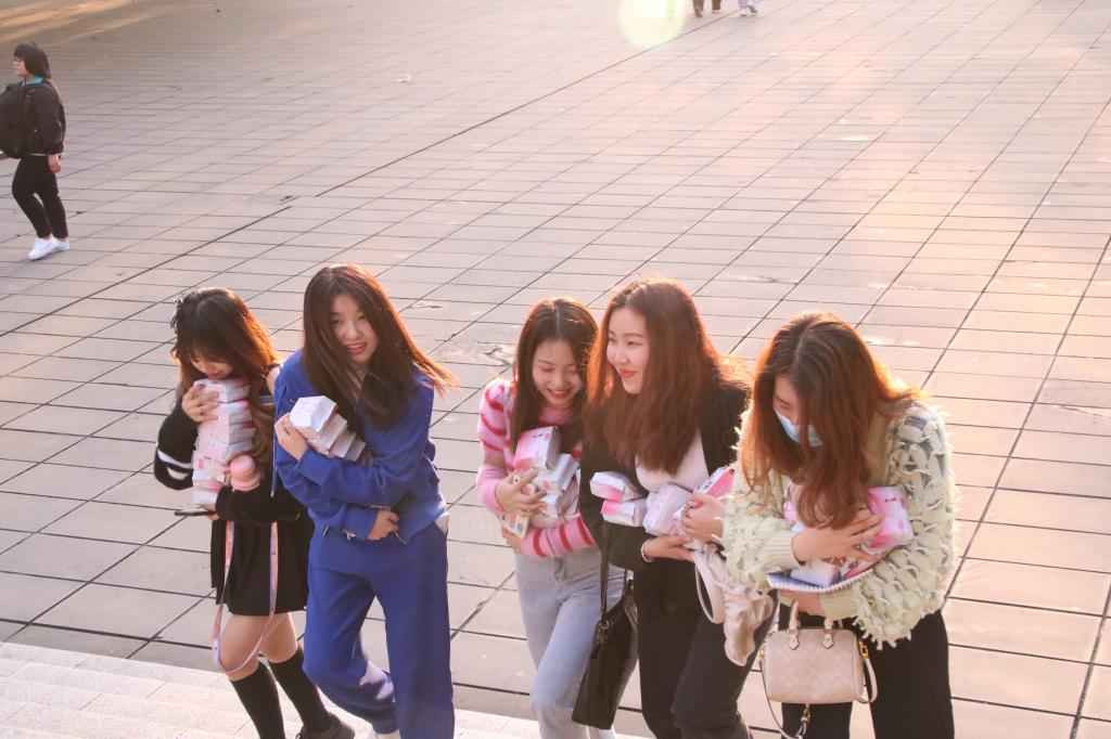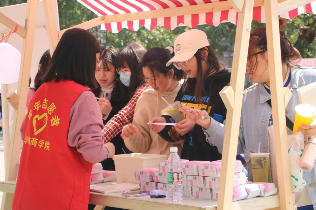 与此同时,此次卫生巾发放行动还走进了2019级工商管理和市场营销专业的主题年级会和南北校区各书院寝室,为全校女性带来一个别具一格的节日。