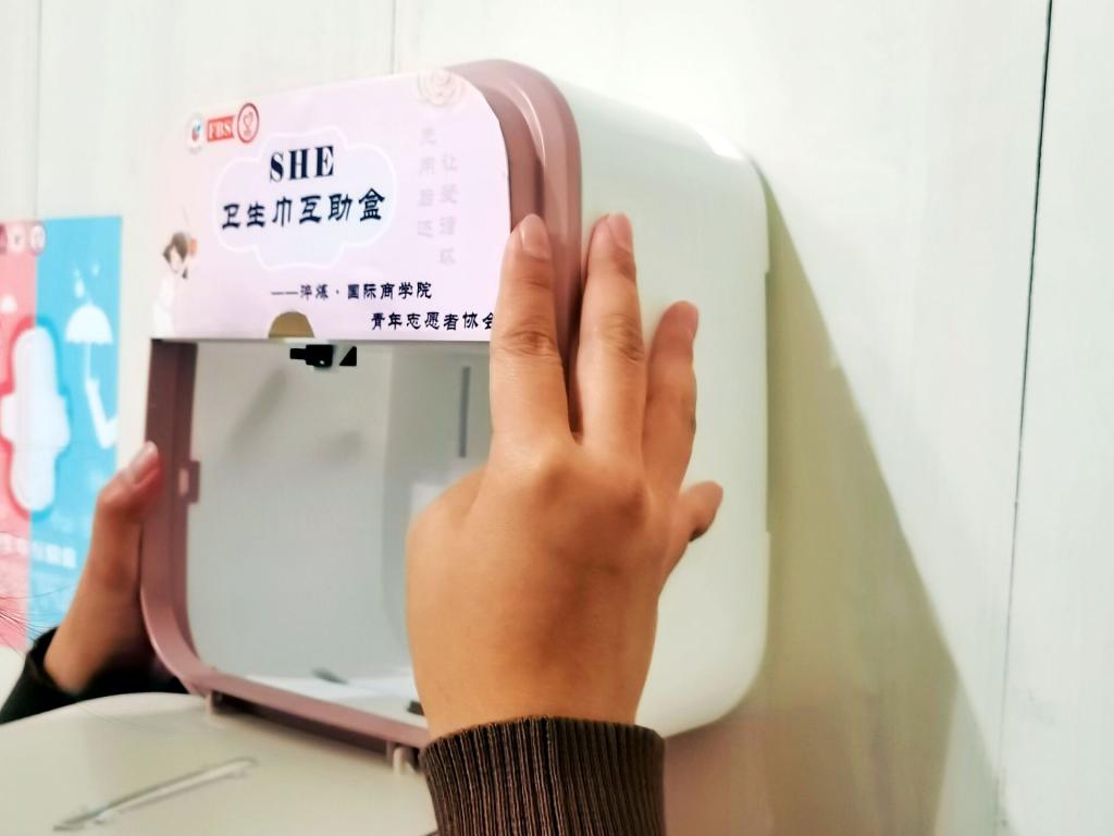 一、“拒绝月经羞耻·卫生巾互助盒”计划。倡导师生拒绝月经羞耻,为女性特殊时期提供便利,宣传卫生巾互助盒“取一还一”的诚信理念。