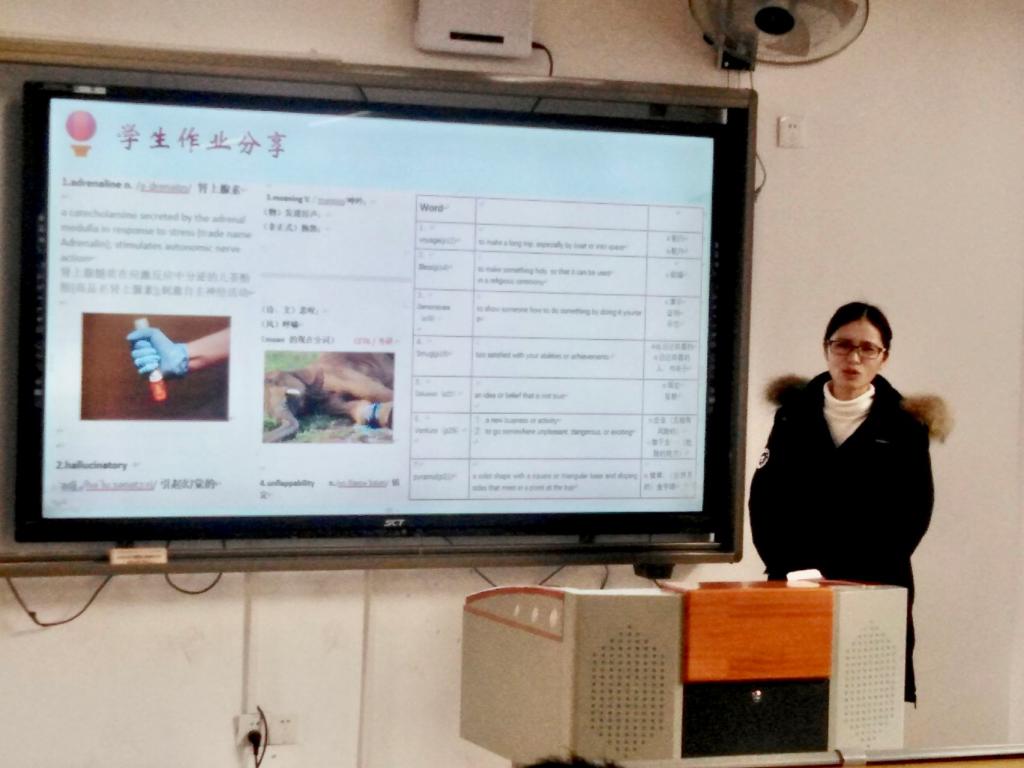 随后,负责《信息产业大咖传记阅读》课程教学的杨芳老师与大家分享了她的教学切实感受。杨老师认为,作为大咖阅读课程的老师,读书要够细。只有老师自己在仔细理解消化了书中精髓之后,才能有的放矢地解答学生的疑惑。另外杨老师也强调,课堂要放宽。引导学生从专业词汇集锦、段落翻译、设计海报、制作广告视频等多种形式,将传记阅读内化于心,真正学有所得。同时,作为老师,更要灵活处理教学问题,以变应万变。此外,杨老师还展示了学生的优秀作业成果,并以“Don’t tell people how to do things, tell them what to do and let them surprise you with their result”结束分享。