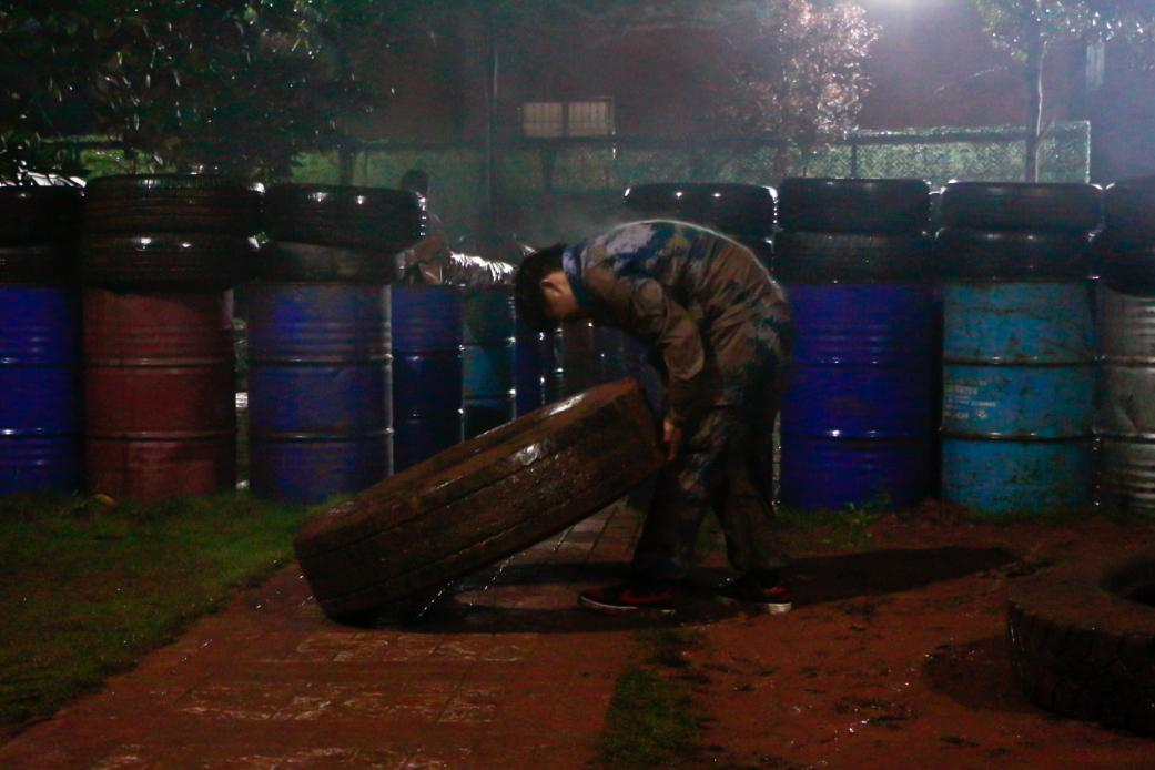 晚餐结束后,学员们迎来了本次淬炼课程中的最大考验——意志力障碍,一共12道障碍,跨越油桶、跳入泥坑、匍匐前进……学员们齐声高喊“大通信,最自信”加油鼓劲,鼓足勇气开始冲锋前行。仅仅一圈,身上就已挂满泥沙,汗水和泥水在脸上交织,但没有一个学员喊苦喊累,学员们互相帮助,握拳攀爬,眼神坚定的冲破了自己的意志屏障,让这一考验的效果得以真正展现。