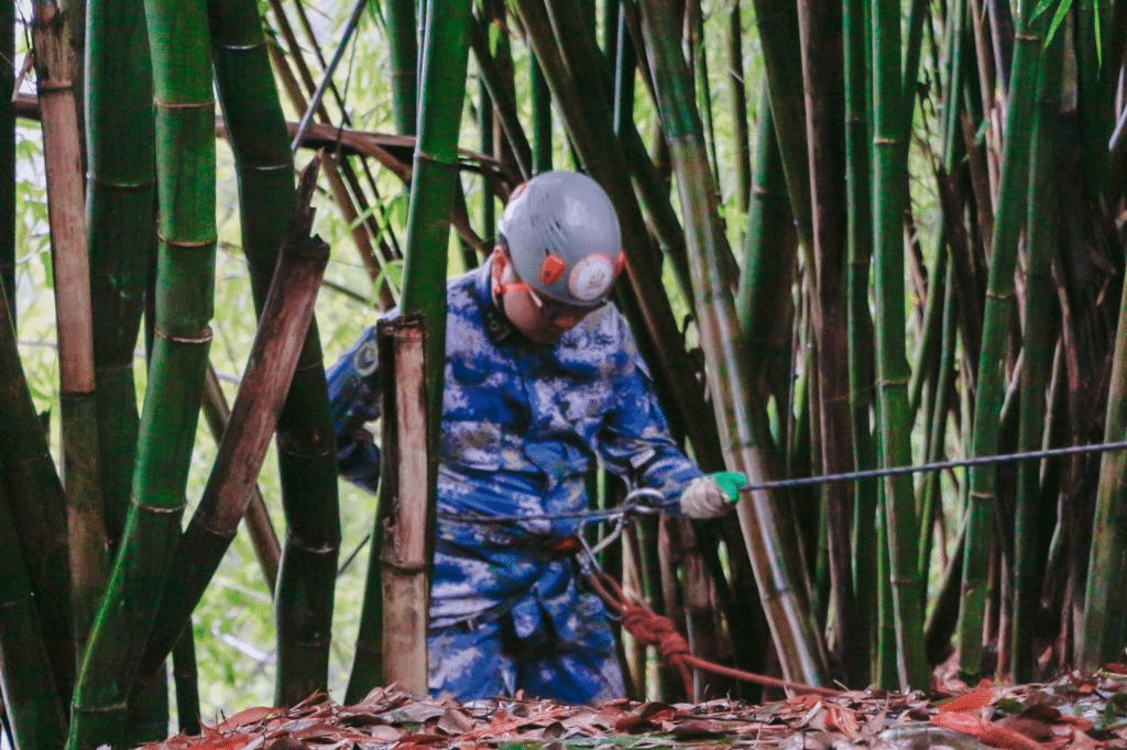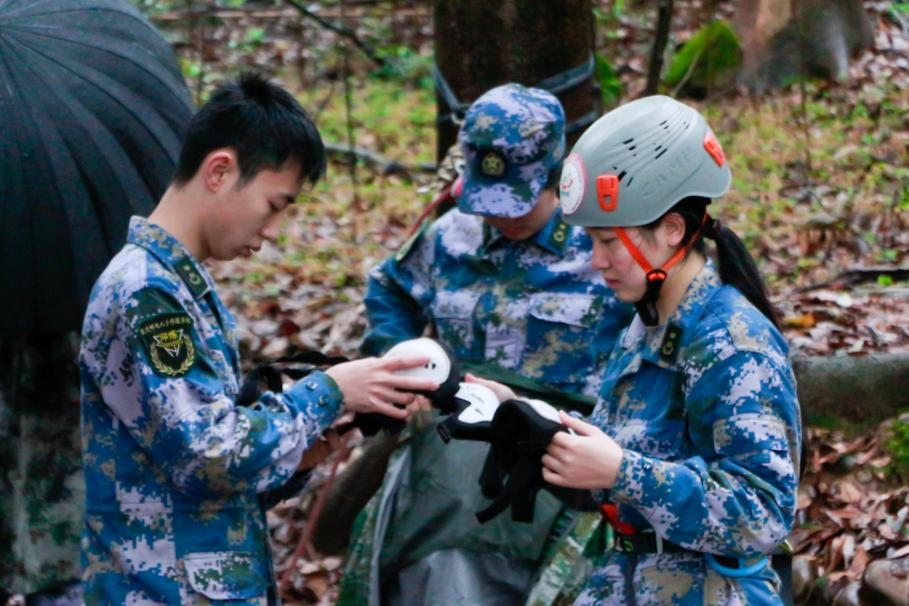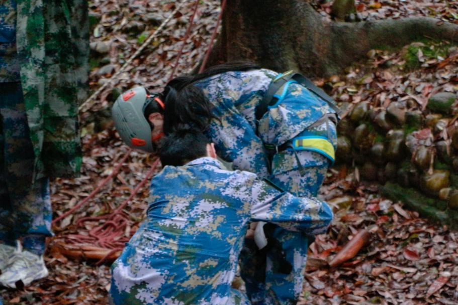 下午,阴雨绵绵,雨水早已打湿了学员们的衣服,但是却丝毫不能影响学员们进行丛林速降和山地攀登的决心和勇气,雨水浸泡的泥土格外湿滑,学员们一次次滑倒,一次次站起,在队友们的加油鼓励下,圆满的完成了本次训练。